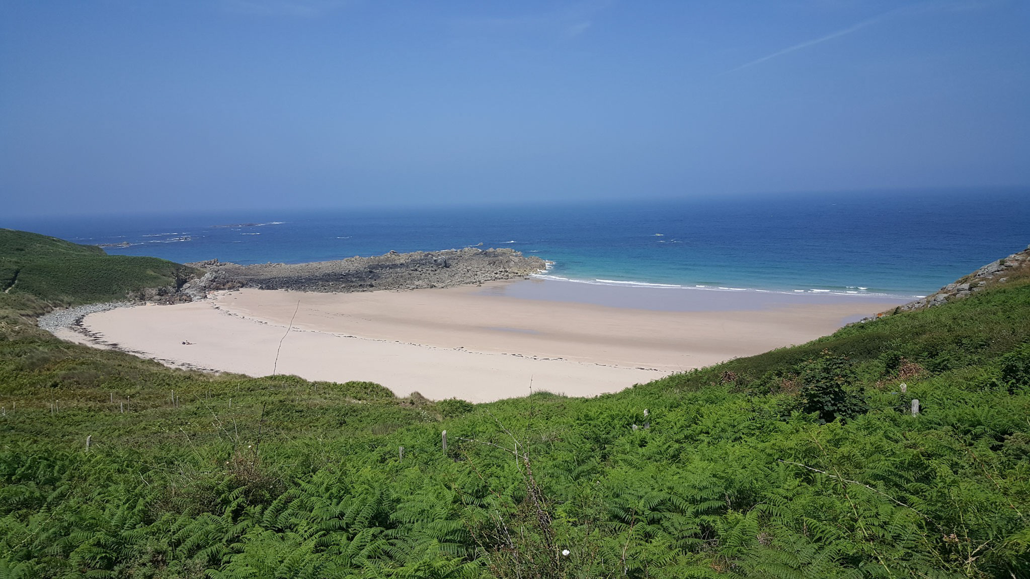 Und da die Côte Penthièvre mit ihren schönen Strände brilliert, fahre ich ein paar Kilometer Richtung Westen und halte am ersten Strand (Plage de la Fosse), um dort meinen Lunch aus dem neu gekauften, thermoisolierten Lunchbag zu geniessen. Luxus ohne Ende…