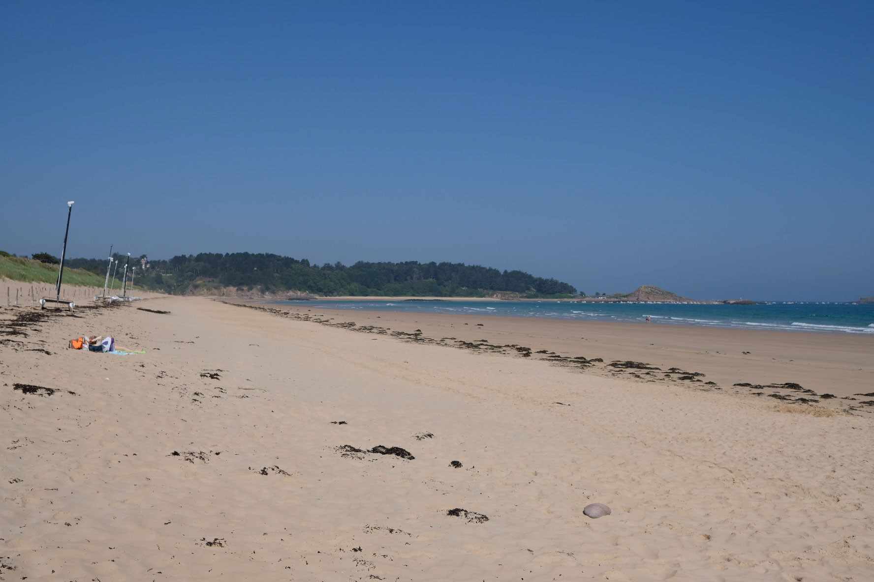 Sables d’Or les Pins ist ein Touristenort im Retorten-Design: Wenn so wenig los ist, wie heute Morgen, dann kommt man sich fast wie in einem Wintersportort im Sommer vor. Nämlich etwas deplatziert. Dafür kann man unter einer immensen Anzahl an Parkplätzen den besten auswählen. Der Strand hinter den schmalen Dünen ist aber definitiv Spitzenklasse. Denn der Ortsname beschreibt perfekt, was den Besucher erwartet: Goldener Sand und Pinien! Mir gefallen diese langen Ortsnamen sehr.