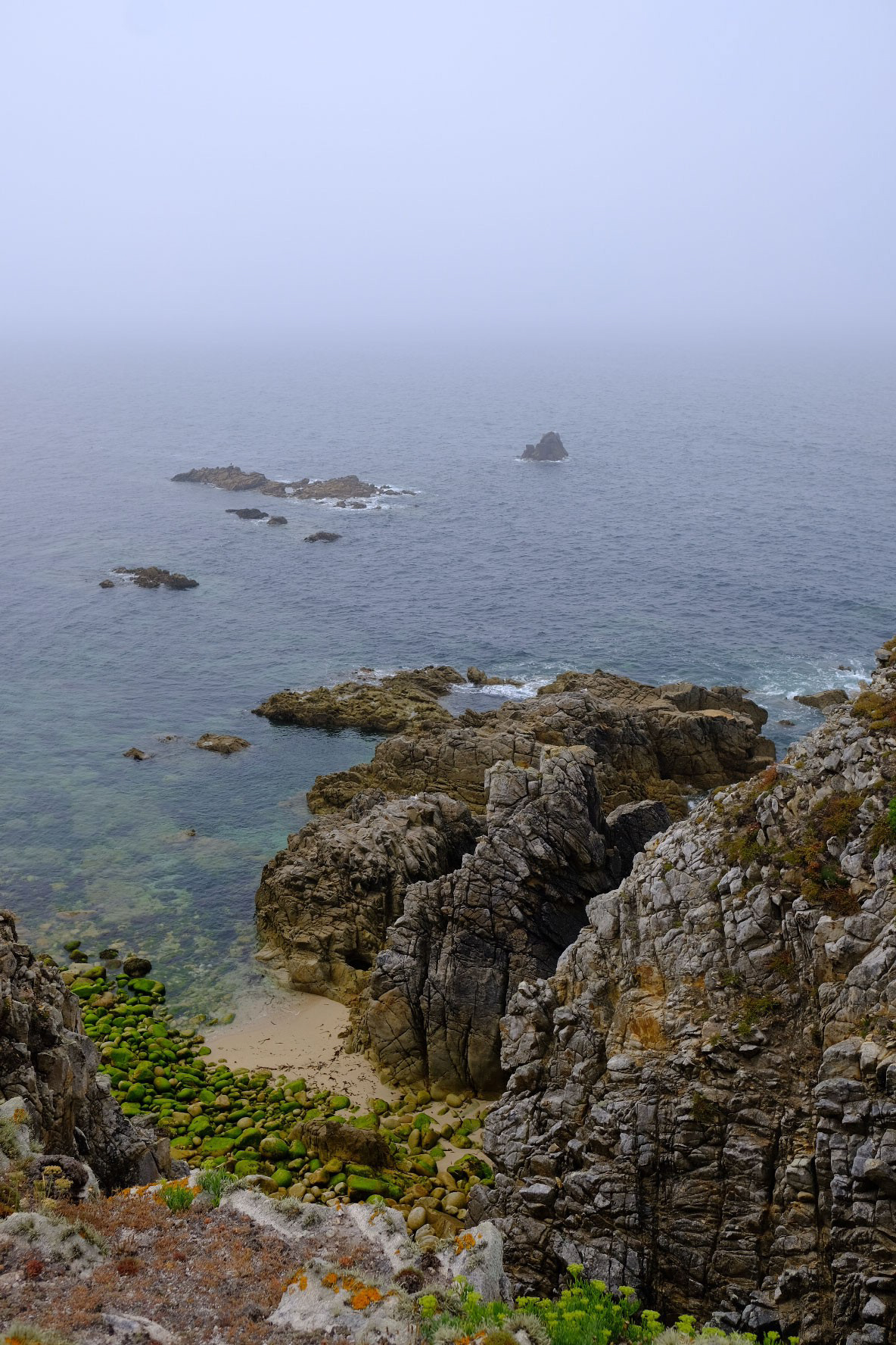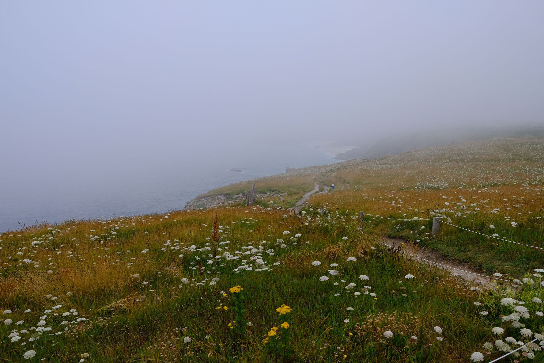 Pointe Corsen ist nämlich der westlichste Punkt Frankreichs und somit das Ende des Endes der Welt. Von 40m Höhe könnte man gut den Chenal du Four und den Chenal de la Helle überblicken. Wenn nicht die schnell ziehenden Nebelschwaden den Blick einschränken würden.