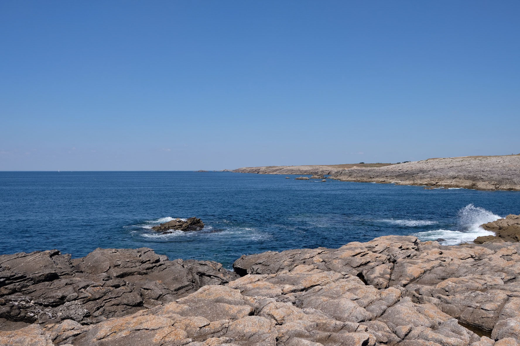 Ich biege daher bei Penthièvre nach Portivy ab: Dort beginnt die 8km lange Küstenstrasse, die sich entlang der Klippen schlängelt. Man kann vielerorts anhalten und entlang der Klippen wandern oder radfahren.