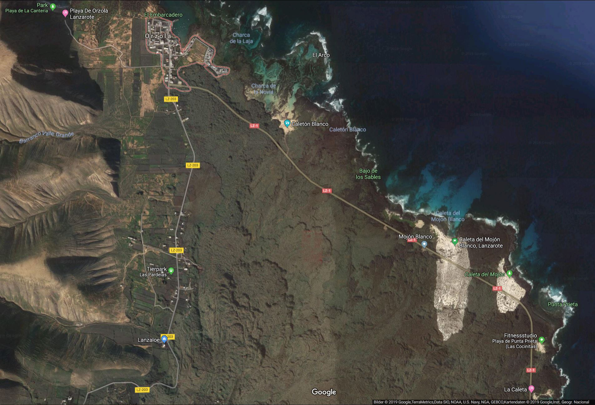 Der Vulkankegel Montaña Corona im Inselnorden entstand vor etwa 3’000 Jahren, indem der Vulkan das Famara-Massiv durchbrach. Seine Lavamassen strömten überwiegend nach Osten und formten dort das 30 Quadratkilometer grosse Lavafeld Malpais de la Corona. Dies bedeutet so viel wie „schlechtes Land am Corona“, was auch nicht verwunderlich ist. Denn auch nach 3’000 Jahren wächst in dieser Mondlandschaft kaum eine Pflanze, an eine landwirtschaftliche Nutzung ist gar nicht zu denken. Zwei Strassen (LZ-1 und LZ-203) wurden durch diese Landschaft gebaut, an den Rändern bringen Orzola und Punta Mujeres etwas Leben.