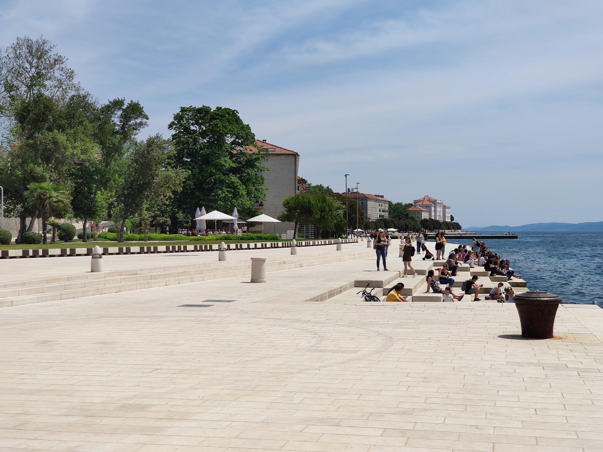 Am Ende der langen Promenade ist jedoch auch zeitgenössische Kunst zu finden: Die „Meeresorgel“ und der „Gruss an die Sonne“ des Architekten Nicola Bašić. Je nach Wasserstand und Wellengang werden verschiedene Rohre mit Orgelpfeifen (sichtbare Öffnungungen) bespielt. Beim zweiten laden Solarzellen einer 22m messenden Scheibe im Boden tagsüber eine abendliche Lichtinstallation auf.