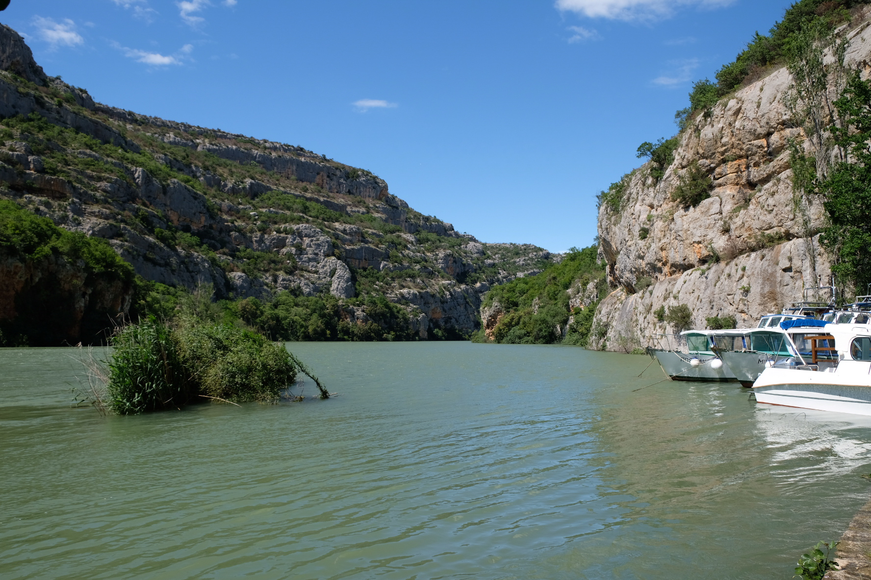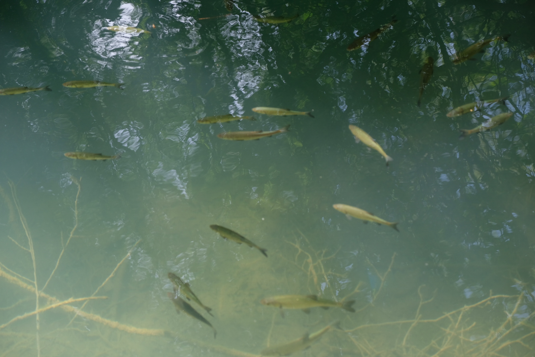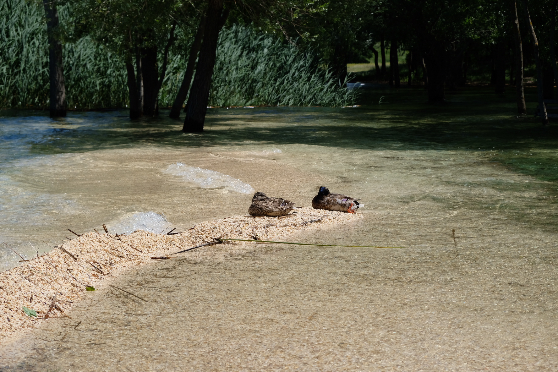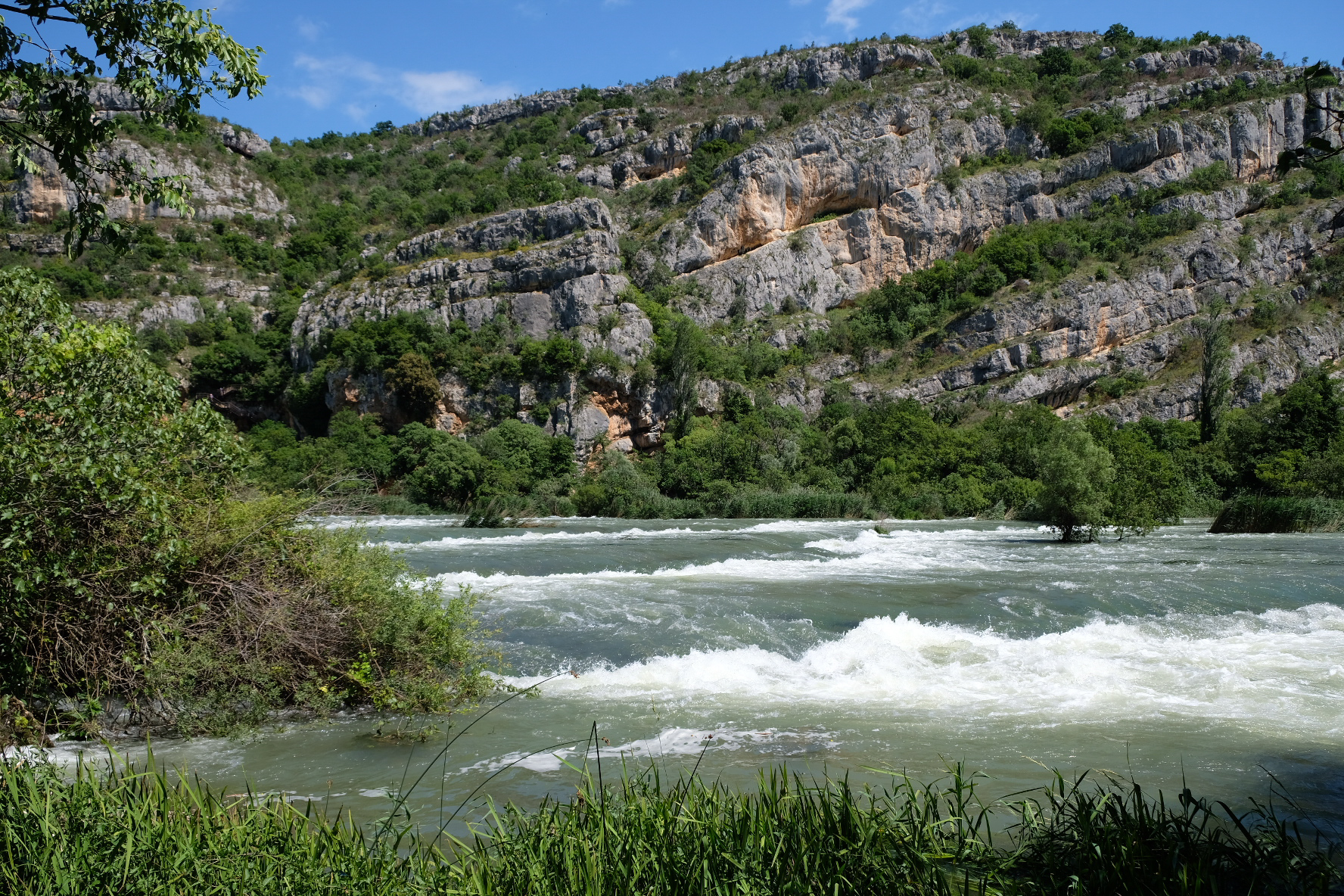 Nach ein paar Fotos an einem malerischen Platz ging es weiter nach Roški Slap. Ich ergatterte einen der letzten Parkplätze an der Strasse und machte mich auf den Rundweg um die die Reihe kleiner Kaskaden (im Volk „Halsketten“ genannt. Davon war aber natürlich nichts mehr zu sehen; nur ein schnell fliessender Fluss. Das nahm den Reiz dieses Wasserfälle natürlich komplett. Dafür schwirrten, respektive flatterten oder tanzten, überall blaue Libellen herum.