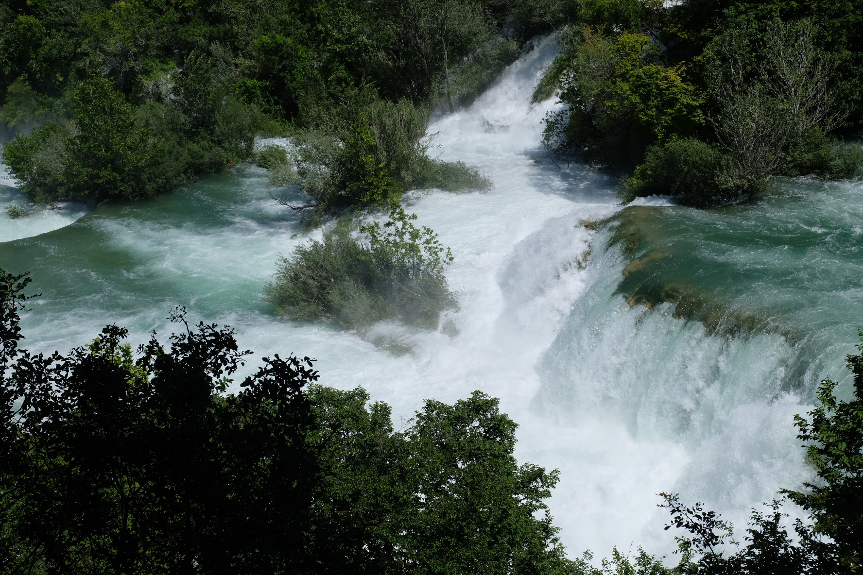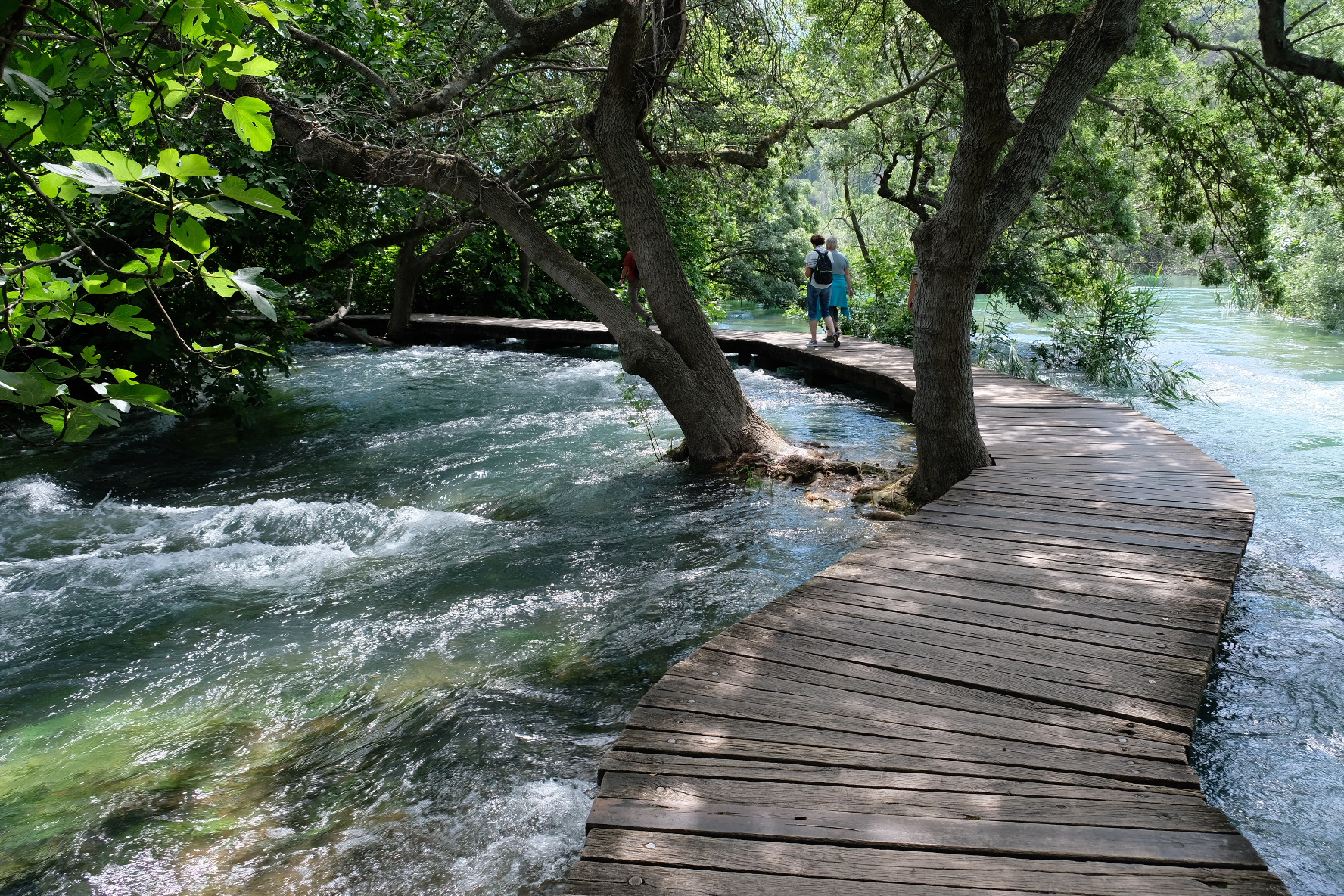 Der Skradinski buk setzt sich aus Rauwackenbarrieren, Inseln und Seen zusammen, die von einem Netz von Pfaden und Brücken für Wanderer durchzogen werden.