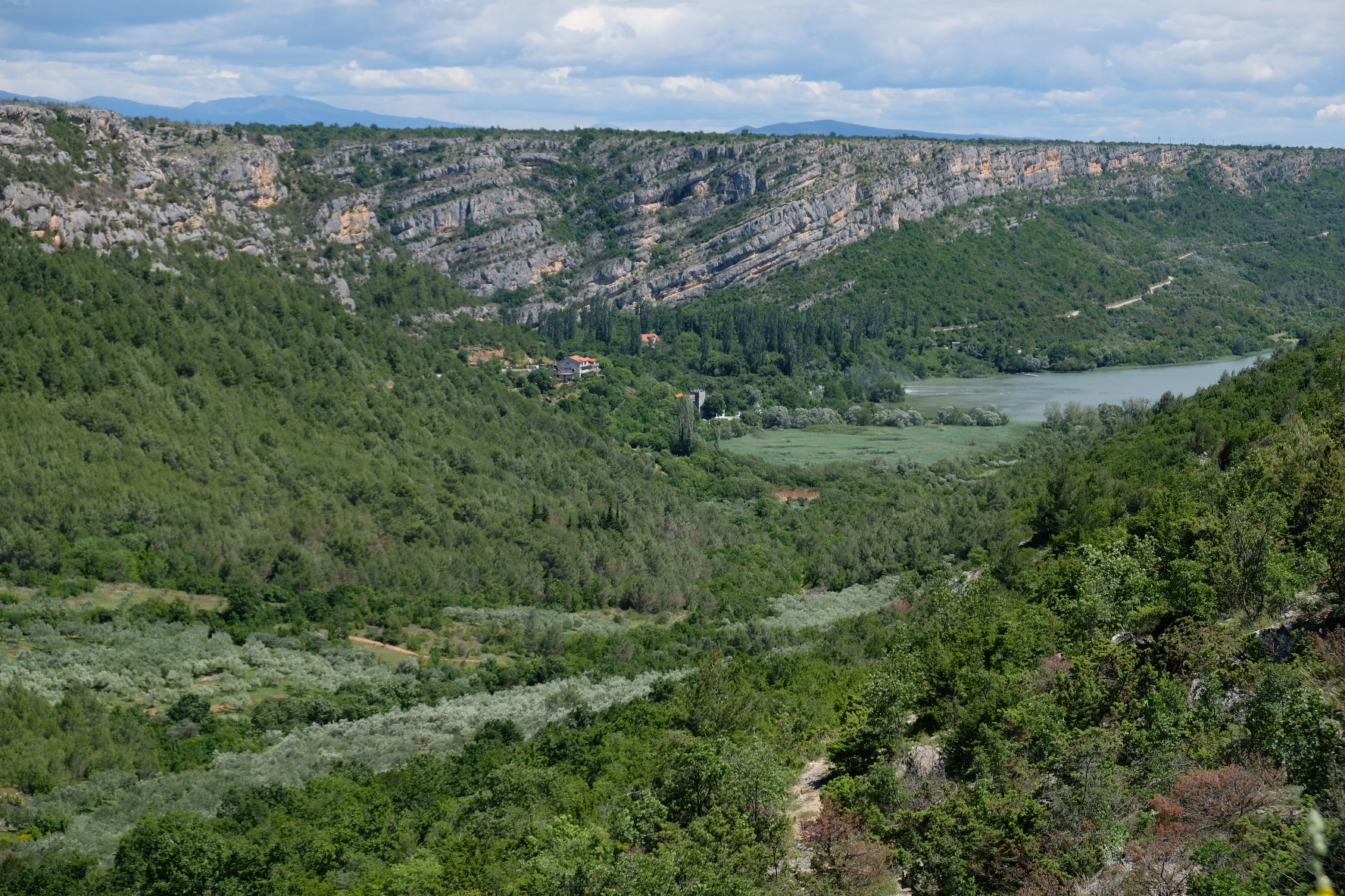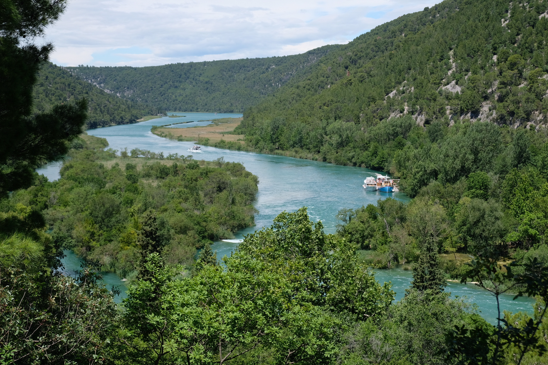 Da die Krka tatsächlich Hochwasser führte, fuhren heute keine Ausflugsboote nach Visovac und Roški slap. Da würde ich nach dem Rundgang noch per Auto hinfahren dürfen. Das Ticket gilt auch an den anderen Orten im Nationalpark.