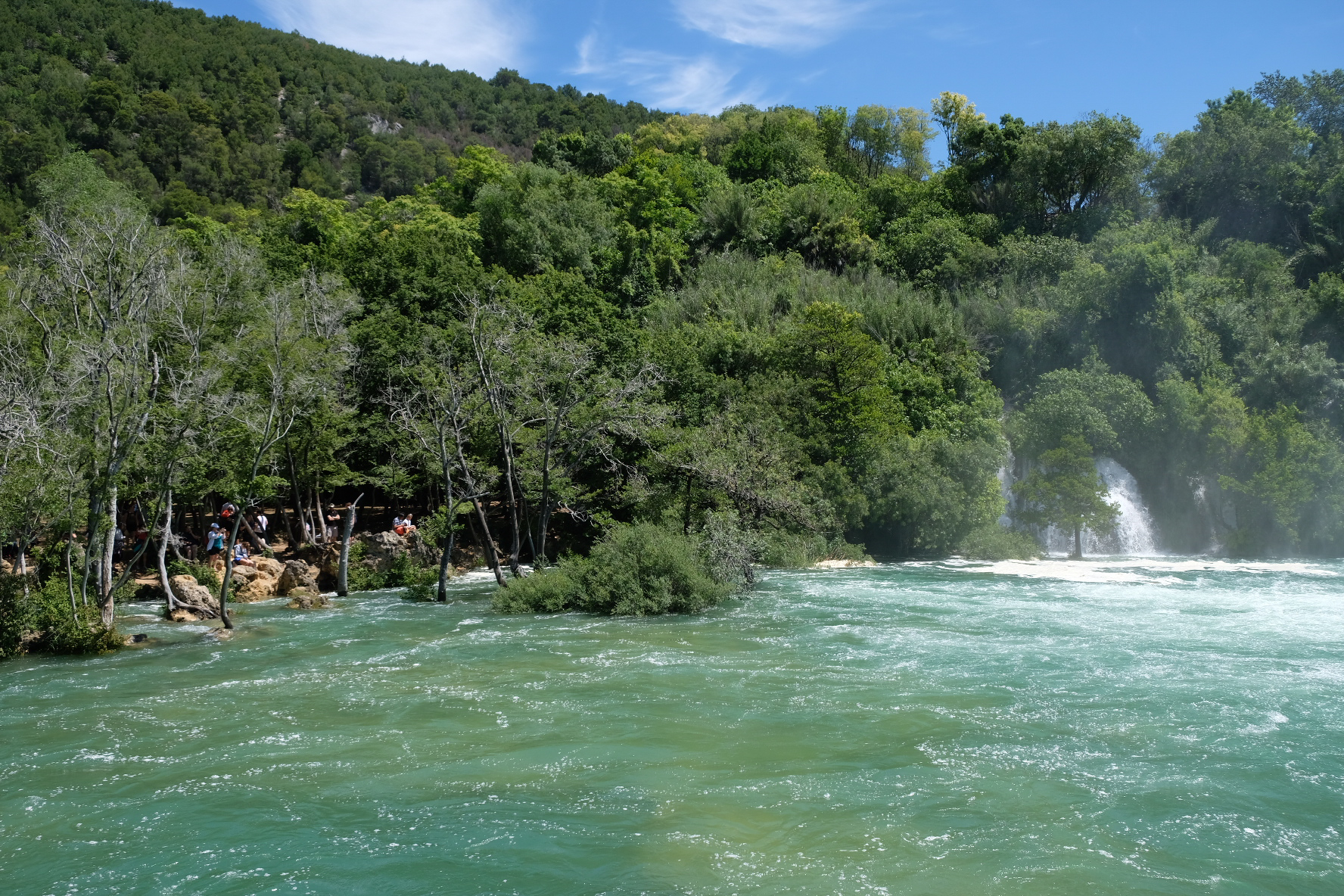 Der 15m hohe Fall in den Visovacer See war aber wieder eindrücklich bei diesen Wassermassen.