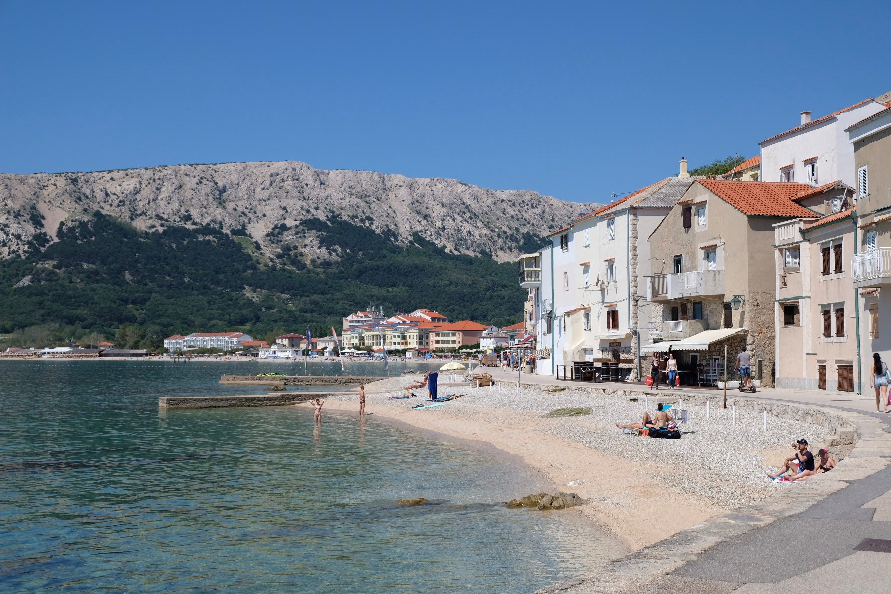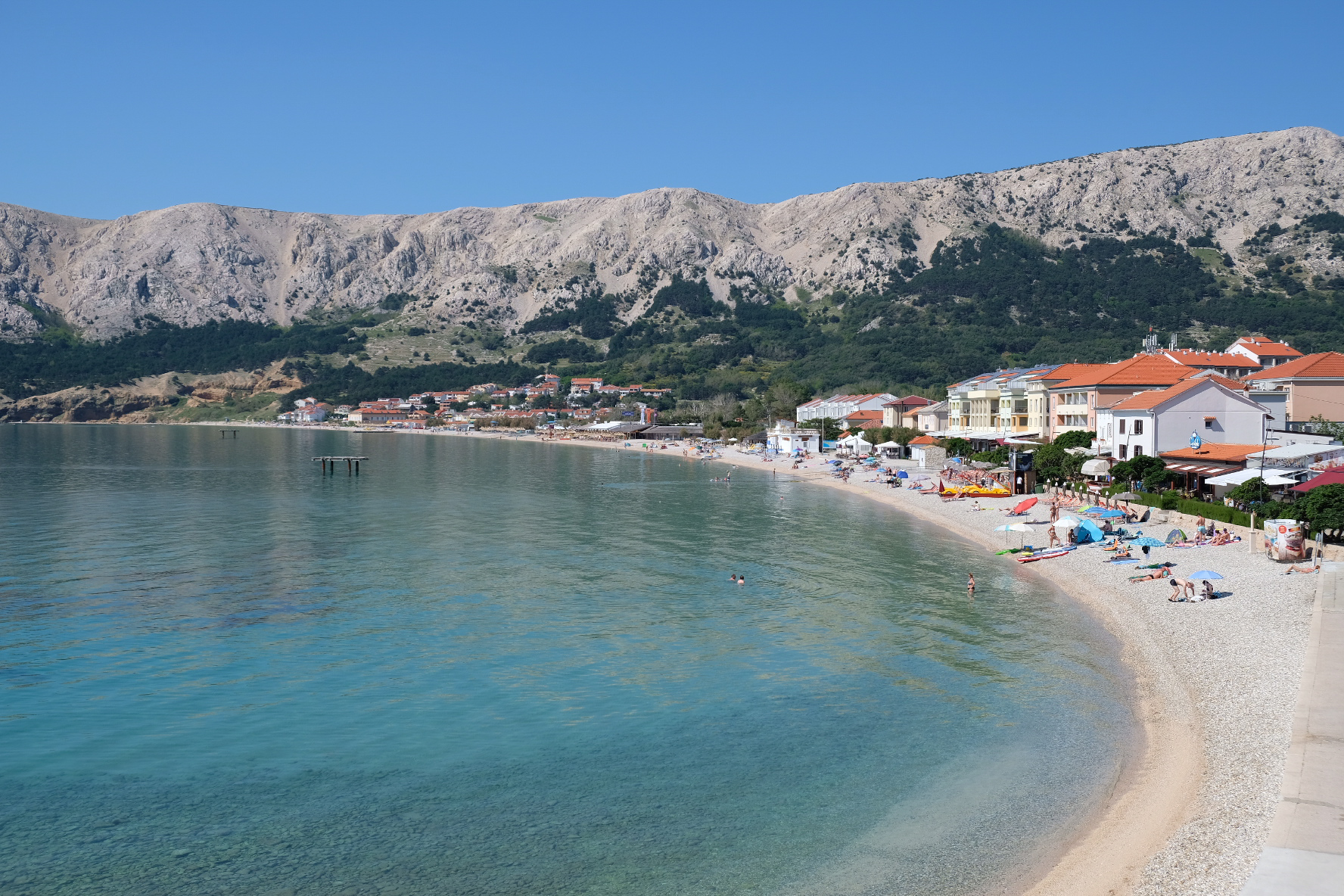 Andererseits ist Baška ein Ort. Dieser zeichnet sich besonders durch einen der grössten und schönsten Kiesstrände an der Adria, mit einer Länge im Halbkreis von mehr als 1800 Metern, aus. Die Meerestiefe erhöht sich stufenweise, deshalb ist der Strand äusserst familientauglich.