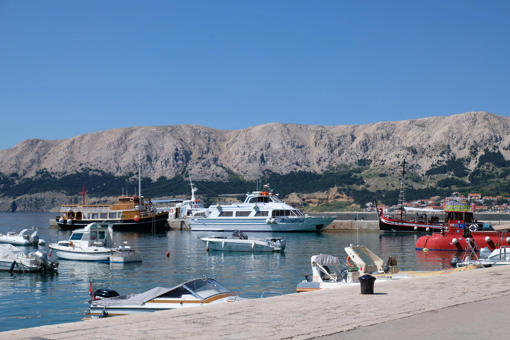 Baška ist aufgrund seiner charakteristischen Architektur, den zahlreichen kulturhistorischen Denkmälern, sowie anhand der vielen Wanderwege in der Umgebung interessant. Gute Hotels, Camps und ein grosse Anzahl privater Unterkünfte lassen den Ort im Sommer sicher ziemlich geschäftig erscheinen. Heute war sehr wenig los, trotz brütender Hitze schon am Morgen war der Strand kaum besucht und die Restaurants nur von ein paar Einheimischen besetzt.