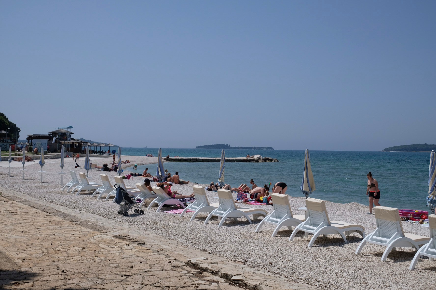 Heute habe ich den Transfer von meinem Ferienhaus auf Krk in mein Ferienhaus in Istrien (Kaštelir) gemacht. Dabei habe ich nicht den direkten Weg über die Autobahn quer durch Istrien, sondern ab Rijeka den Weg nach Pula entlang Küste genommen. Nach der Überquerung der Gebirgslandschaft an der Ostküste von Istrien wollte ich eigentlich Pula besichtigen. Dort angekommen, herrschte (Samstag!) aber ein solcher Trubel und grosse Parkplatznot, dass ich mich entschloss, der Küste entlang an einem kleineren Ort anzuhalten.
