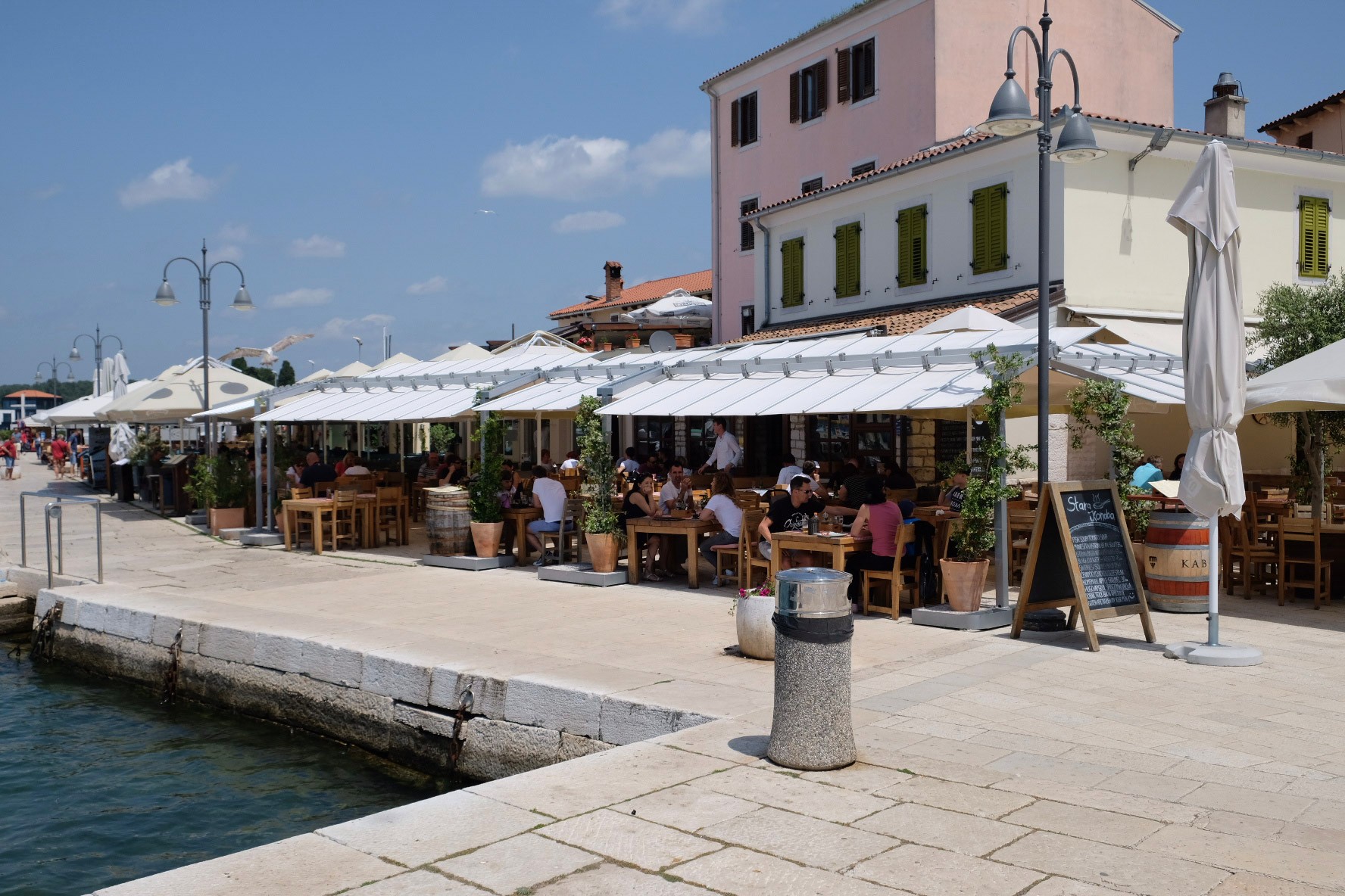 Der nächste Ort war dann logischerweise Fažana. Das beschauliche Fischerdorf wird von grossen Parkplätzen umgeben. Diese dienen den Autos der Ausflügler in den NP Brijuni. Hier könnte ich mein Auto auf einem der vielen unbesetzten Parkplätzen unterbringen.