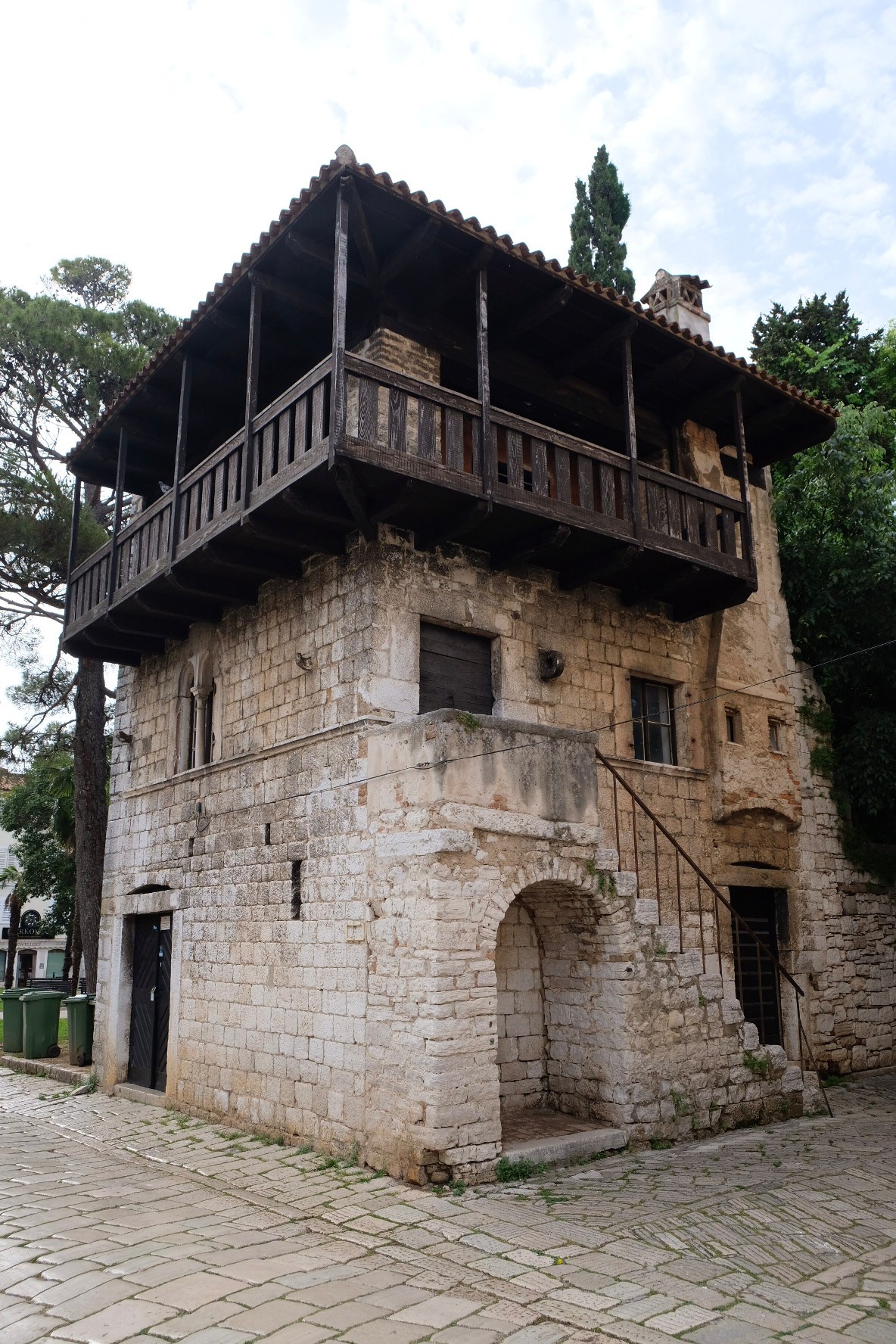 Das Forum Romanum war der zentrale Platz in der römischen Antike, gelegen am Ende der Hauptachse Decumanus. Hier kann man stellenweise noch das alte Pflaster bewundern, sowie ein romanisches, dreistöckiges Haus aus dem 13. Jh. mit umlaufenden Holzbalkon bestaunen. Auch in der Fülle der interessanten Häuser aus vielen Jahrhunderten sticht dieses Gebäude schon heraus. Man kann sich schon fast das Leben im 13. Jahrhundert auf diesem Platz lebhaft vorstellen.
