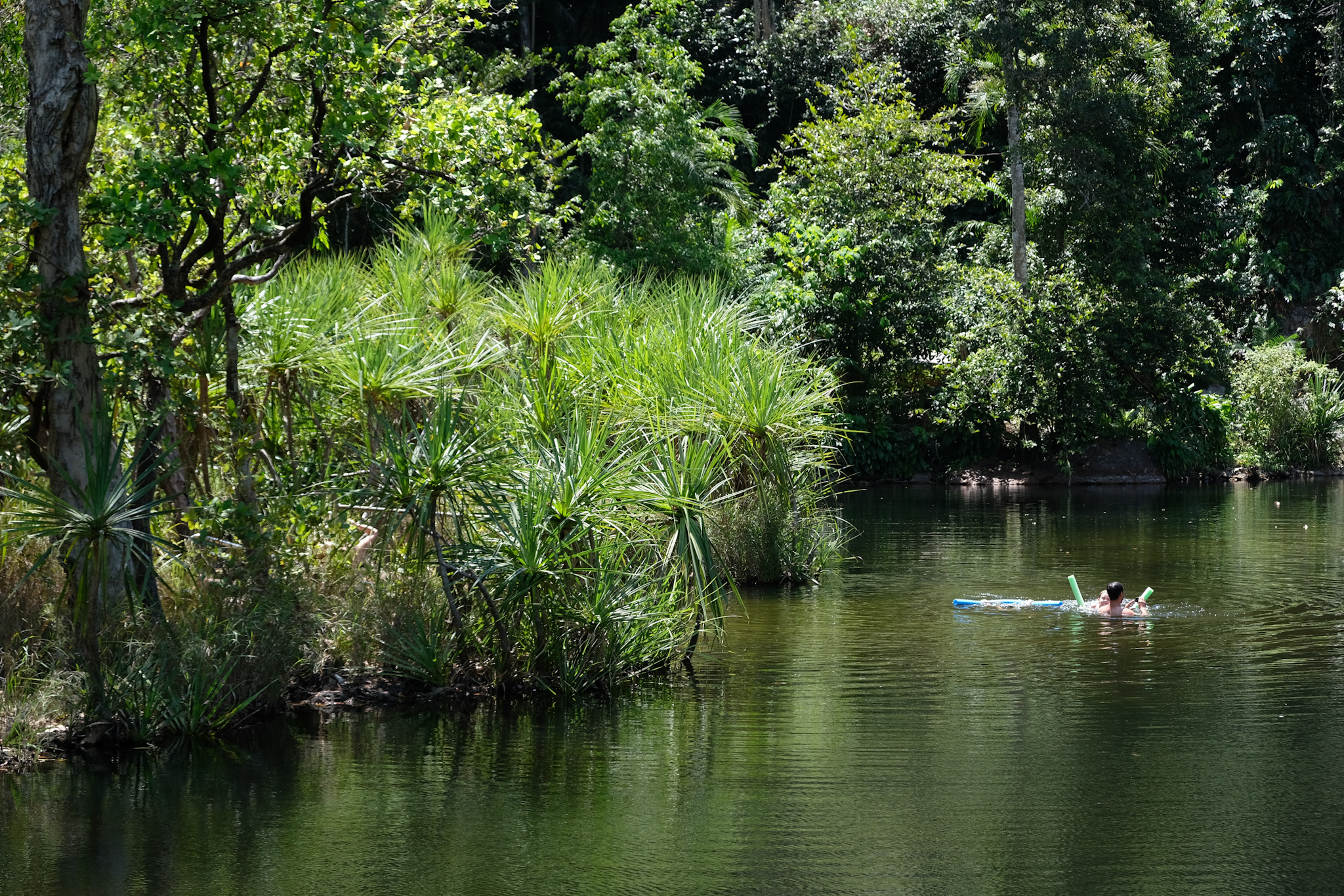 In keinem Prospekt über das Top End (und wahrscheinlich auch nicht auf Instagram) fehlen die Bilder der 80m hohen Wangi Falls im Litchfield NP. Wangi Falls wird von vielen Tourbussen ab Darwin angefahren und es werden wohl auch einige Kreuzfahrttouristen einen Tagesausflug (mit langer Busfahrt) ab Darwin buchen.