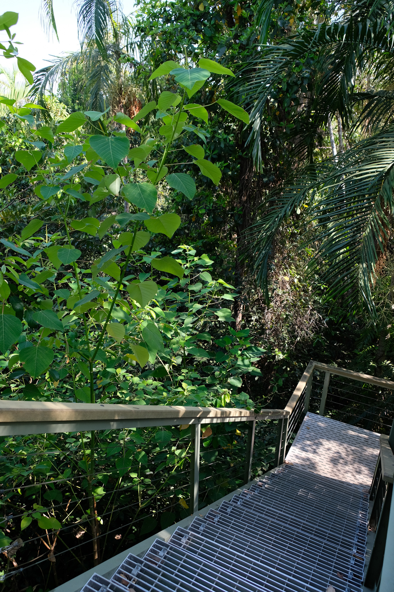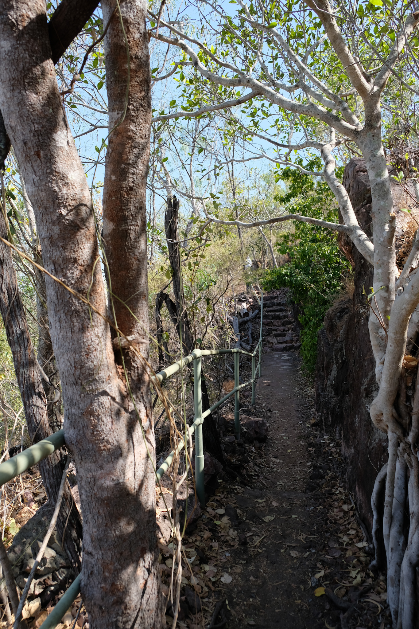 Ich zog mir im Camper die Badehose an und packte ein Badetuch in den Rucksack. Zuerst wollte ich aber den 3km langen Loop Walk bewandern. Der führt durch den Monsoon-Regenwald und führt dann über Metalltreppen und viele Stufen hoch zum oberen Ende des Wasserfalls. Der Weg ist sehr gut mit Stegen und festem Grund ausgebaut. Der Wald und die sich verändernde Landschafts ist extrem schön, die Aussicht fantastisch. Und wenn man diese Wanderung, so wie heute, fast alleine machen kann, ist das ein ganz besonderer Genuss. Ich hatte auch Spass, ein paar (schwarze) Braubkopfkakdus zu beobachten. Auf der anderen Seite des Wasserfalls geht es dann über Steintreppen wieder rund 100m Höhenunterschied runter.