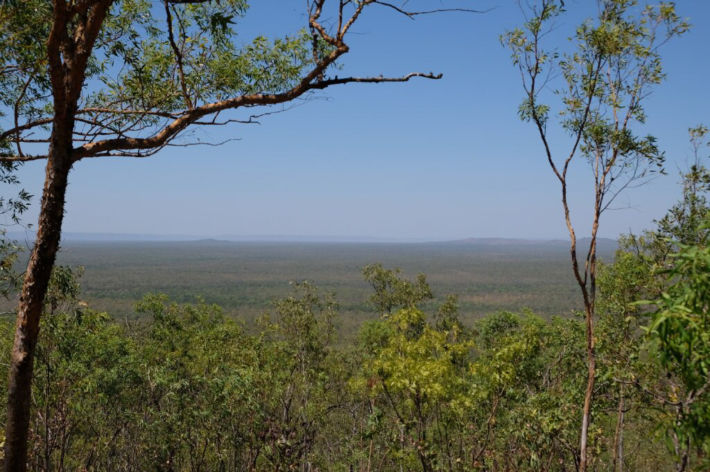 Am Ende des Pfades entlang der Shelter führt ein weiterer Pfad Rauf zum Gunwarddehwarde Lookout. Von dort hat man einen faszinierenden Ausblick auf die Nourlangie Felsformationen und die Kakadu-Ebene. Auf Tafeln ist die mythische Bedeutung jeder dieser Felsformationen beschrieben. Ich glaube den Ausführungen am Ende des Rundweges, dass dies ein grosses Geschenk an uns ist, dass wir diese heiligen und geschichtsträchtige Orte der lokalen Clans besuchen dürfen. Das ist wohl nur möglich, da der eigentliche Clan ausgestorben ist und sich die Nachbar-Clans um den Erhalt der Stätten kümmern.