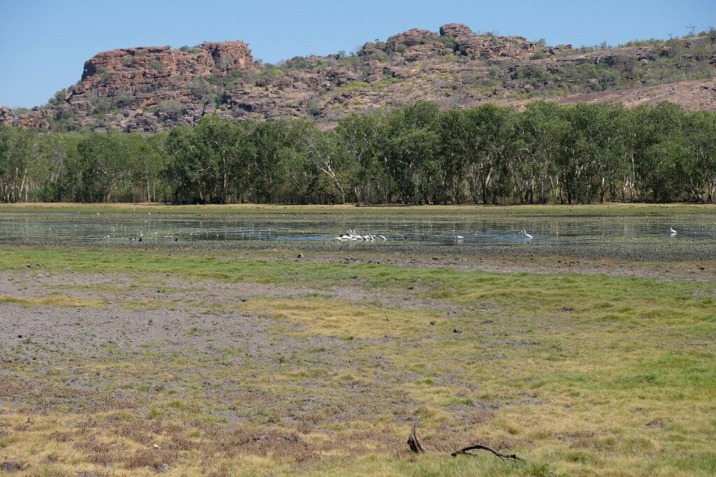 Ich nahm dann noch die Abzweigung zum Anbangbang Billabong. Hier kann man sich zum Lunch niederlassen und die Szenerie mit unzähligen Vögel beobachten. Die Kakadus kümmern sich wie immer um die Soundkulisse. Es führt auch ein 2.5km langer Walk rund um den Billabong.