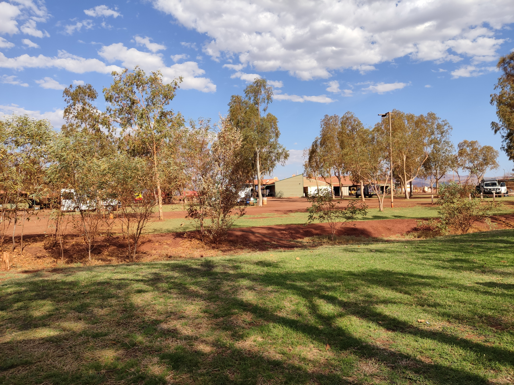 Beim Auskie Roadhouse war dann auch sehr viel los. Hinter dem Roadhouse ist ein überraschend grüner und gepflegter Platz mit viel Schatten für Camper, dann hat es natürlich noch viele Baracken mit Motel-ähnlichem Angebot.