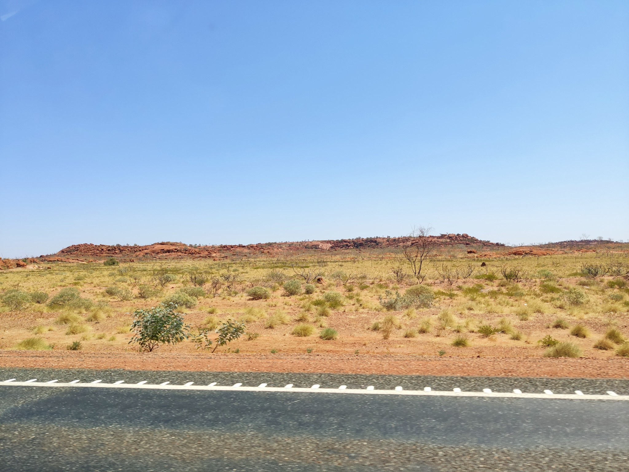 Die Strecke auf dem unendlich lang scheinenden Great Northern Highway führt ab Broome durch unspektakuläre (Halb-) Wüstenlandschaften.