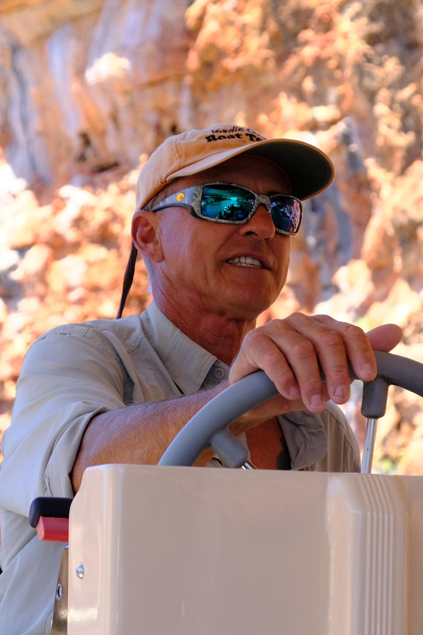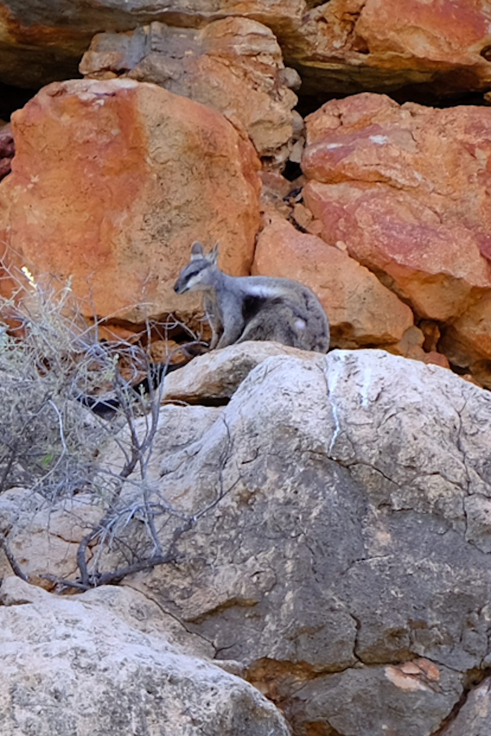 Danach empfängt einem Peter, der sehr freundliche Guide und Besitzer dieses Unternehmens. Seine deutschen Eltern sind in den 60er Jahren zuerst nach Australien und dann nach Exmouth ausgewandert, da neben der Base der Amerikaner ein neuer Ort gebaut wurde. Er hat also die alten Zeiten ohne Tourismus und befestigte Strassen erlebt. Nach einer kurzen Einführung in die Geschichte geht es los. Wir sehen grosse Schildkröten bei den Mangroven, bestaunen die Pflanzen an den Canyon-Wänden, sehen sehr viele Rockwallabies und ein Paar riesiger Seeadler. Peter kann die Details vieler Pflanzen und des hiesigen Ökosystems super erklären. Viele Details habe ich in den unten stehenden Abschnitten aus offiziellen Informationen zusammengefasst.
