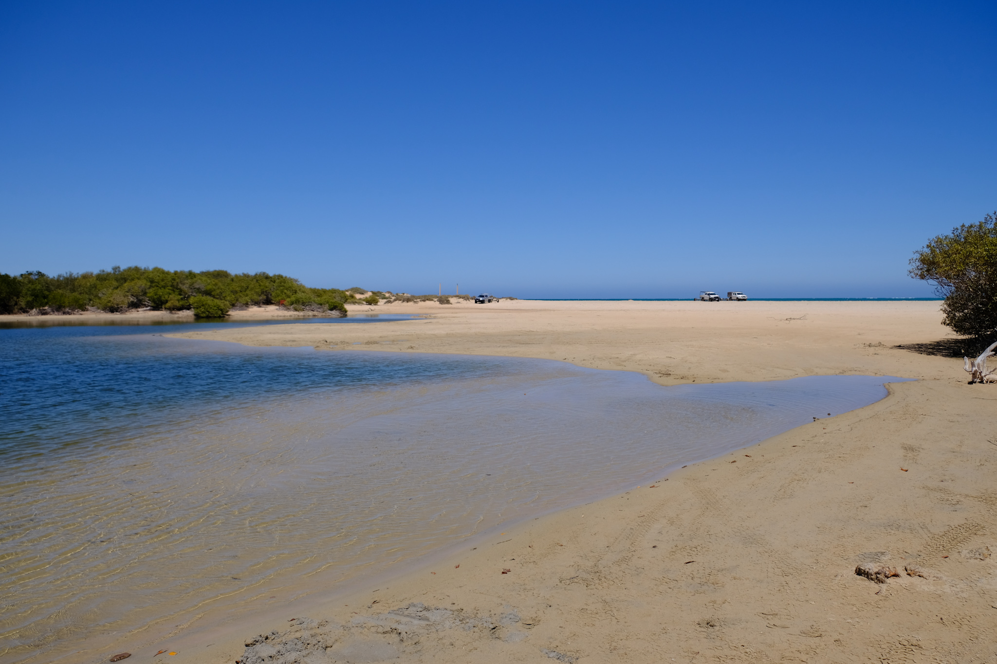 Wenn der Bach zum Meer hin offen ist, bringen die monatlichen Fluten, die die neuen und vollen Mondphasen widerspiegeln, Meerwasser in den Yardie Creek, sodass Rochen, Haie, Meeresfische und Schildkröten in den Bach eindringen können. Lauschen Sie dem Plumpsen der Meeräsche, die über die Wasseroberfläche springt. Achten Sie auf den Darter, der nach Wittling sucht. In den Sommermonaten können Sie sogar Schwärme jugendlicher Riffhaie beobachten, die opportunistisch die warmen Untiefen nutzen, um sich vor größeren Haien zu schützen, während diese wachsen. Wenn sich die Mündung des Baches mit Sand verschliesst, können diese und andere Meerestiere für mehrere Jahre gefangen sein.