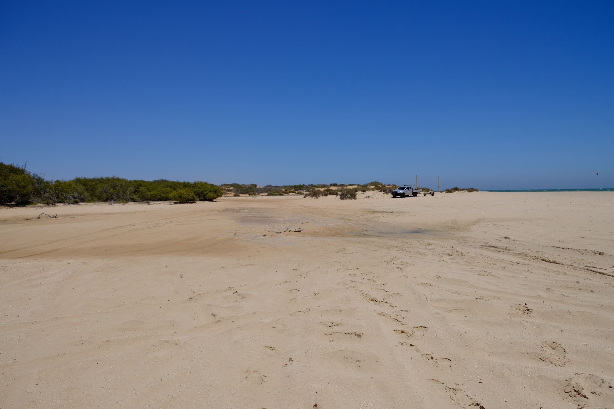 Nachmittags haben dann die Kiter die Beach besetzt. Das Skurrilste war allerdings ein Emu, der sich zum Waschen ins Meer begab. Von den Menschen liess der sich nicht stören. Leider war ich im Wasser und konnte keinen Schnappschuss machen.
