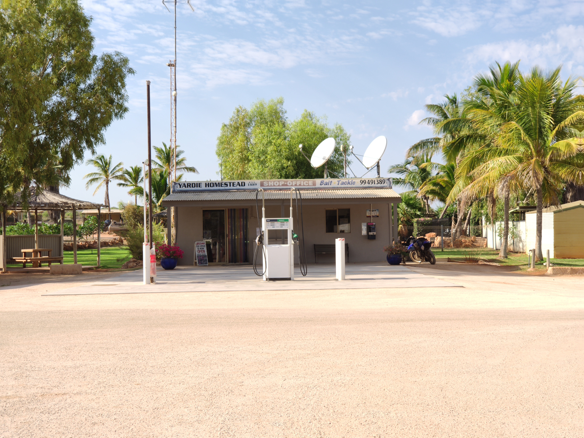 Und fast hätte ich das Städtchen Exmouth vergessen. Es hat sich in den letzten Jahren stark herausgeputzt. Nun glänzt das Ningaloo Center mit der Visitor Information, einem Aquarium und einem Zyklon-Erfahrungsraum. Angegliedert ist auch ein kleines Kongresszentrum. Das nette Einkaufszentrum bietet alles, was Touristen und die Einheimischen benötigen. Komischerweise hat es zwei IGA Filialen (Lebensmittelläden) gerade gegenüberliegend. Weiterhin hat es einige Hotels und mehrere schöne Caravan Parks/Resorts. Der Ort bietet alles, was es zum Leben braucht und bedient natürlich auch die Angestellten der Militärbasen im Umfeld.