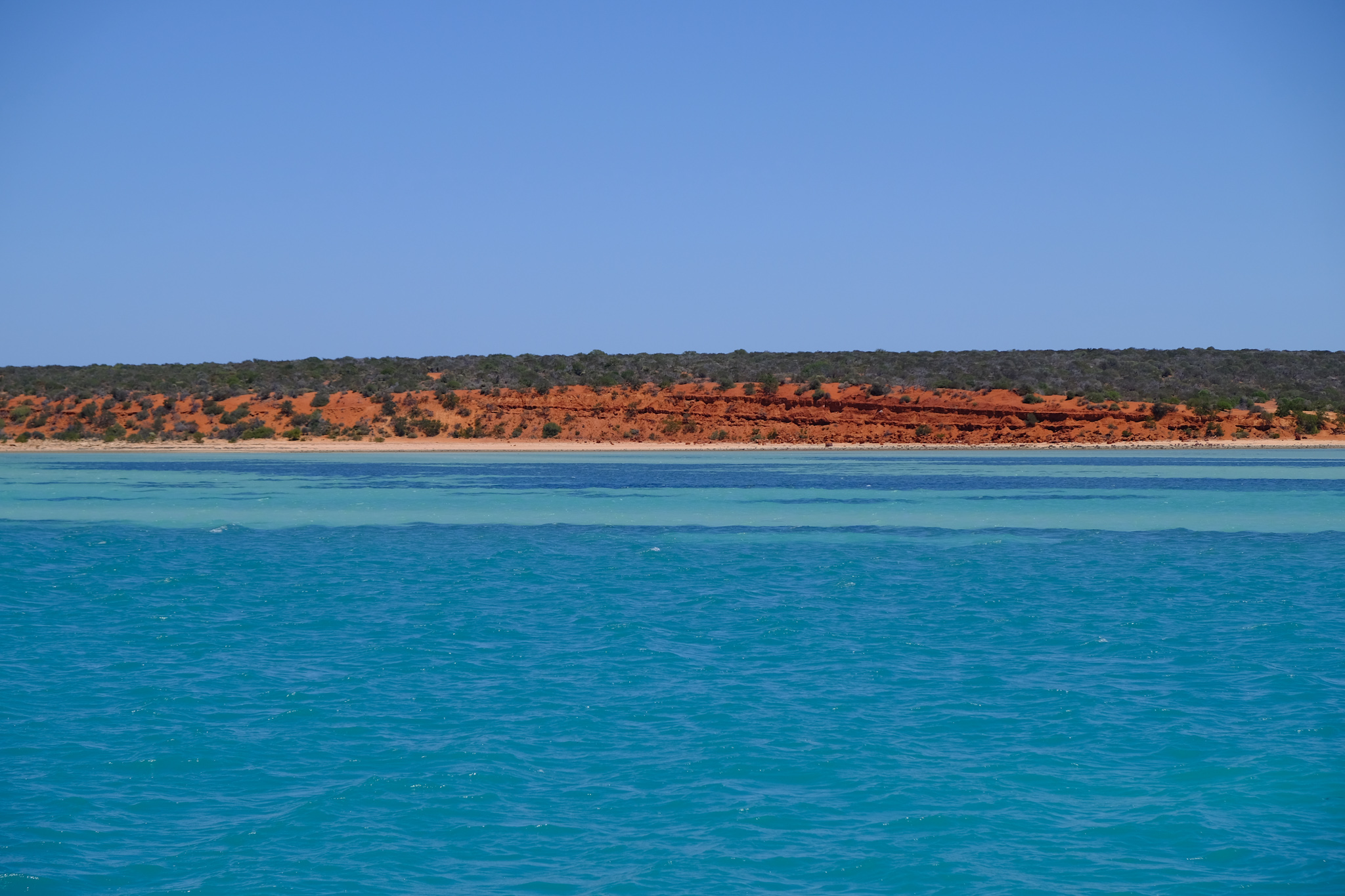 Nachdem wir mehr als genügend Dugongs gesichtet hattet, ging es langsam entlang der Küste wieder zurück nach Monkey Mia. Das Farbenspiel des türkisen Wassers, des weissen Strandes und der leuchtend roten Klippen fasziniert immer wieder. So stellt man sich Australien vor.