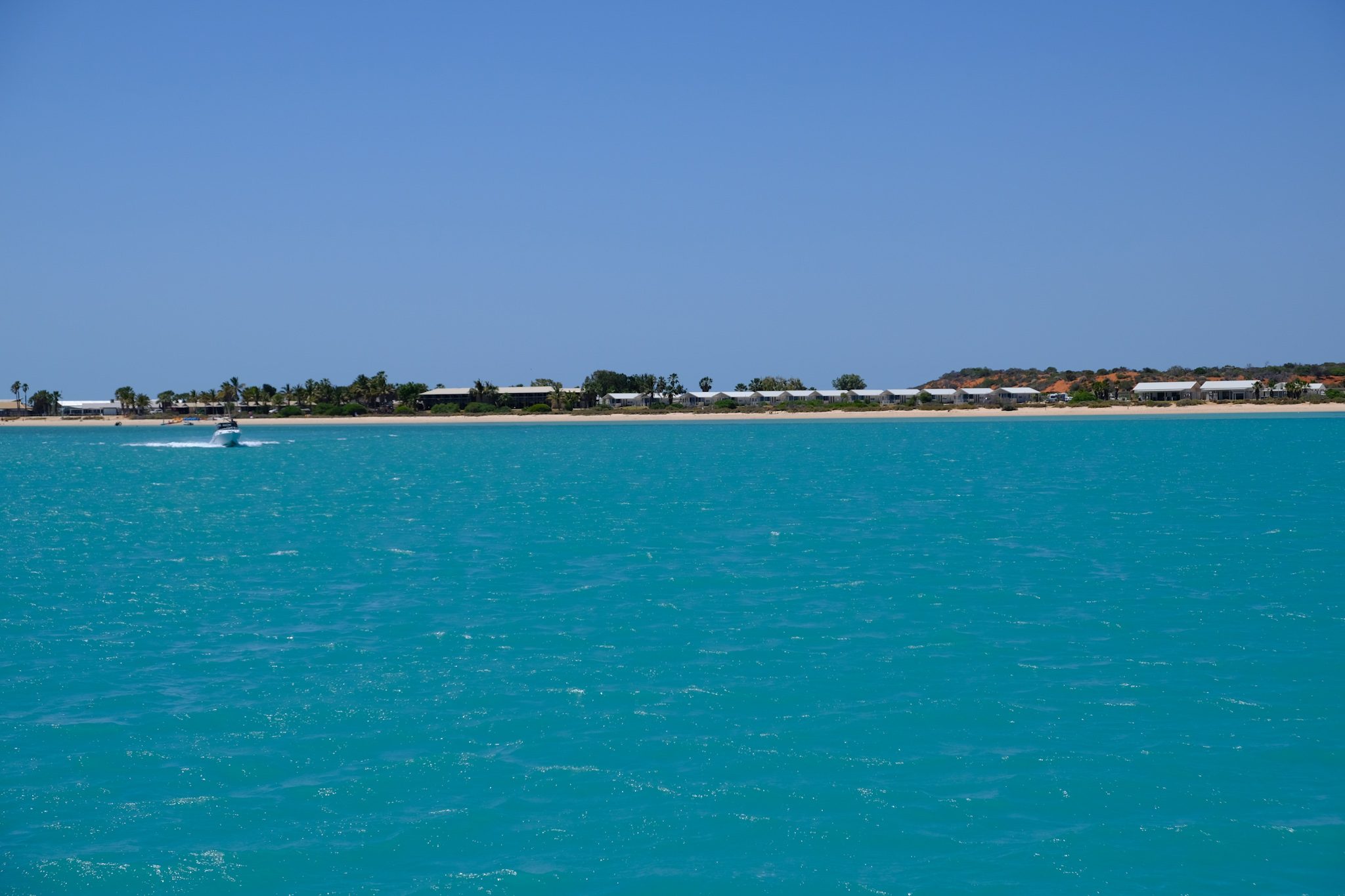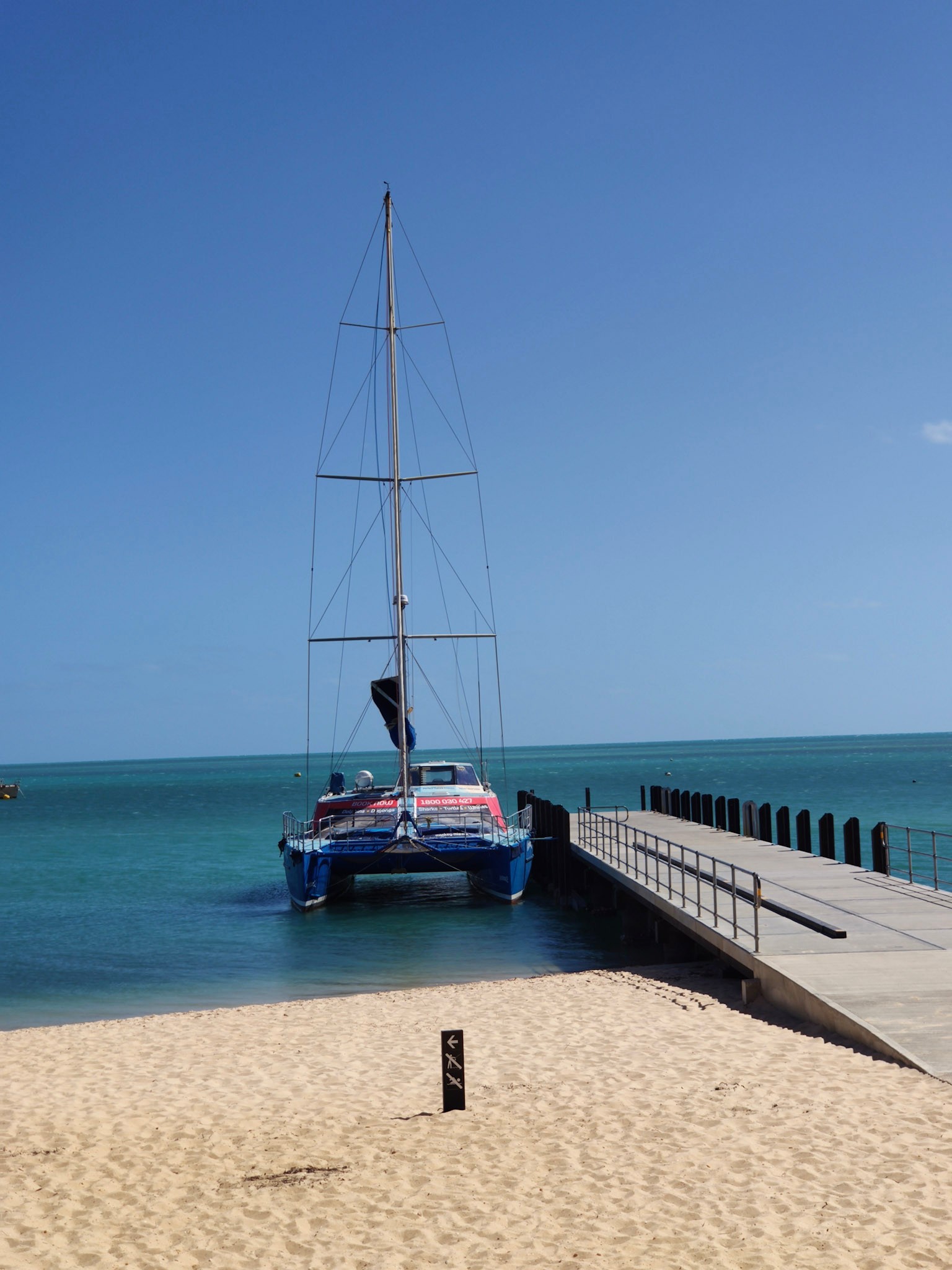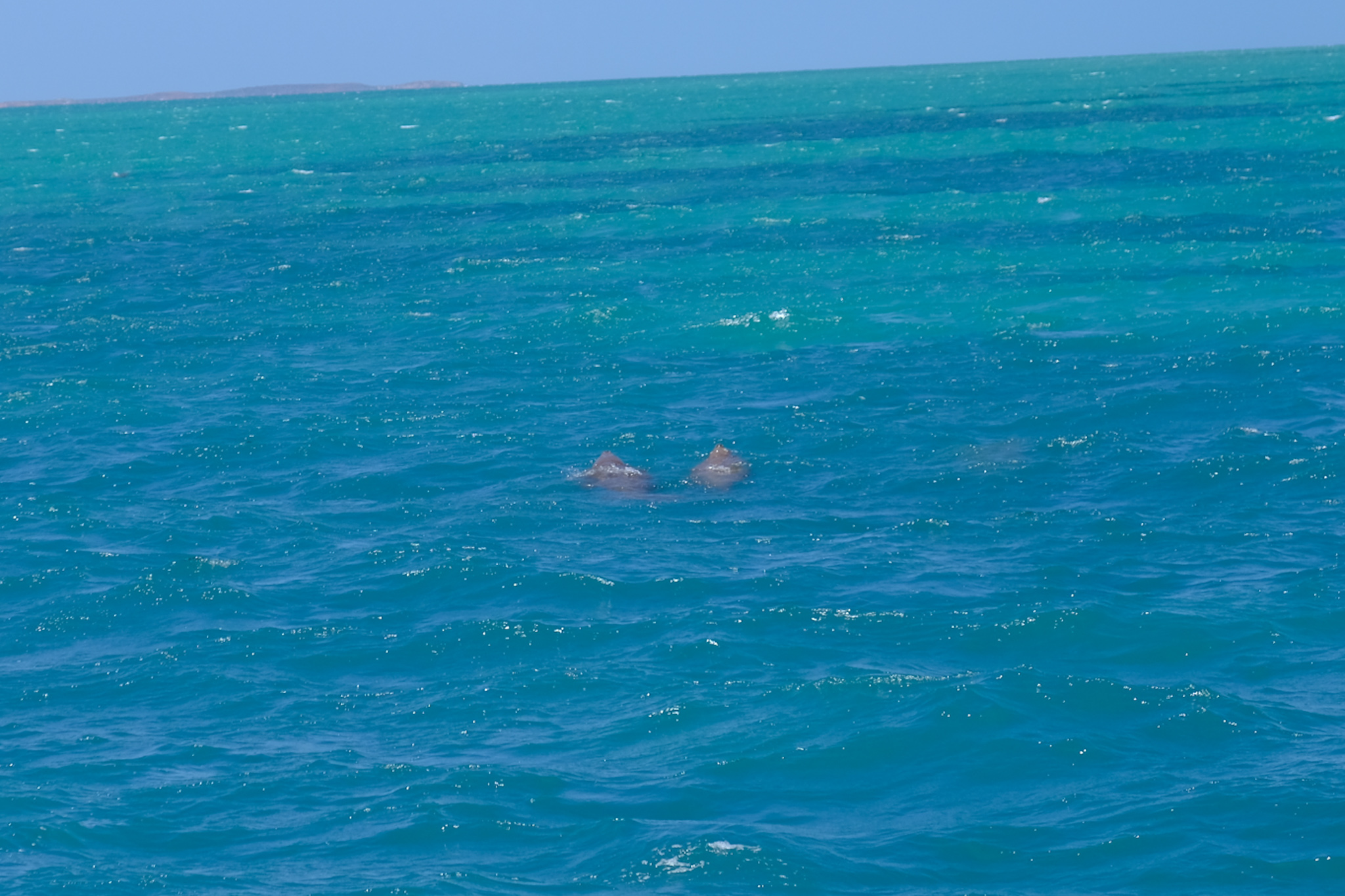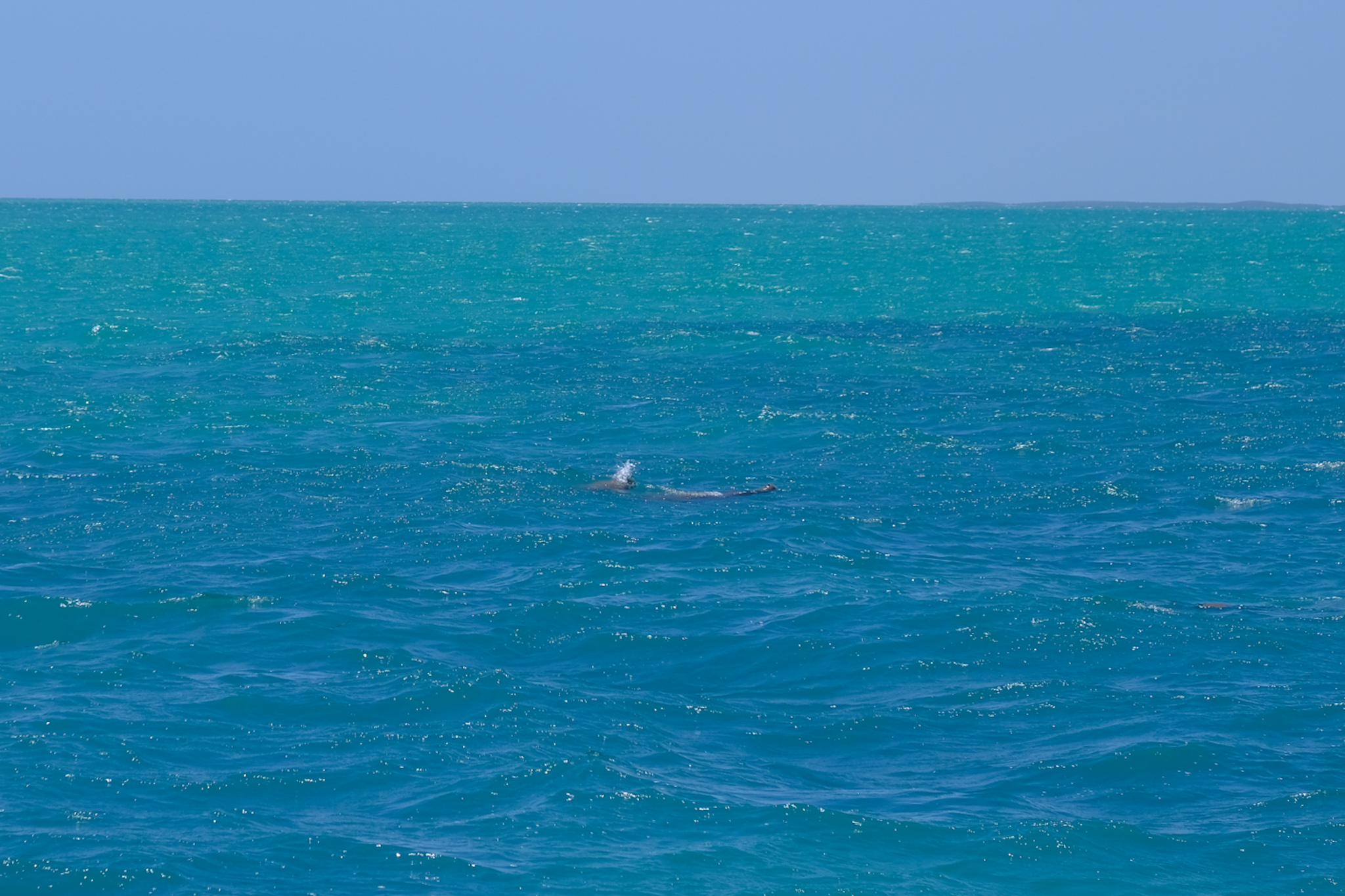 Die Skipperin Mel und ihre Kollegin haben uns empfangen und schon bald setzten sie die Segel (fuhren aber vorwiegend mit dem Motor), um zuerst einmal die Delfine in der Bucht zu beobachten. Wie immer schön anzuschauen. Dann ging es langsam etwas weiter raus in die seichten Gewässer, um die Dugongs zu finden. Zuerst einmal sahen wir aber nur vereinzelte Kormorane und eine Schildkröte.