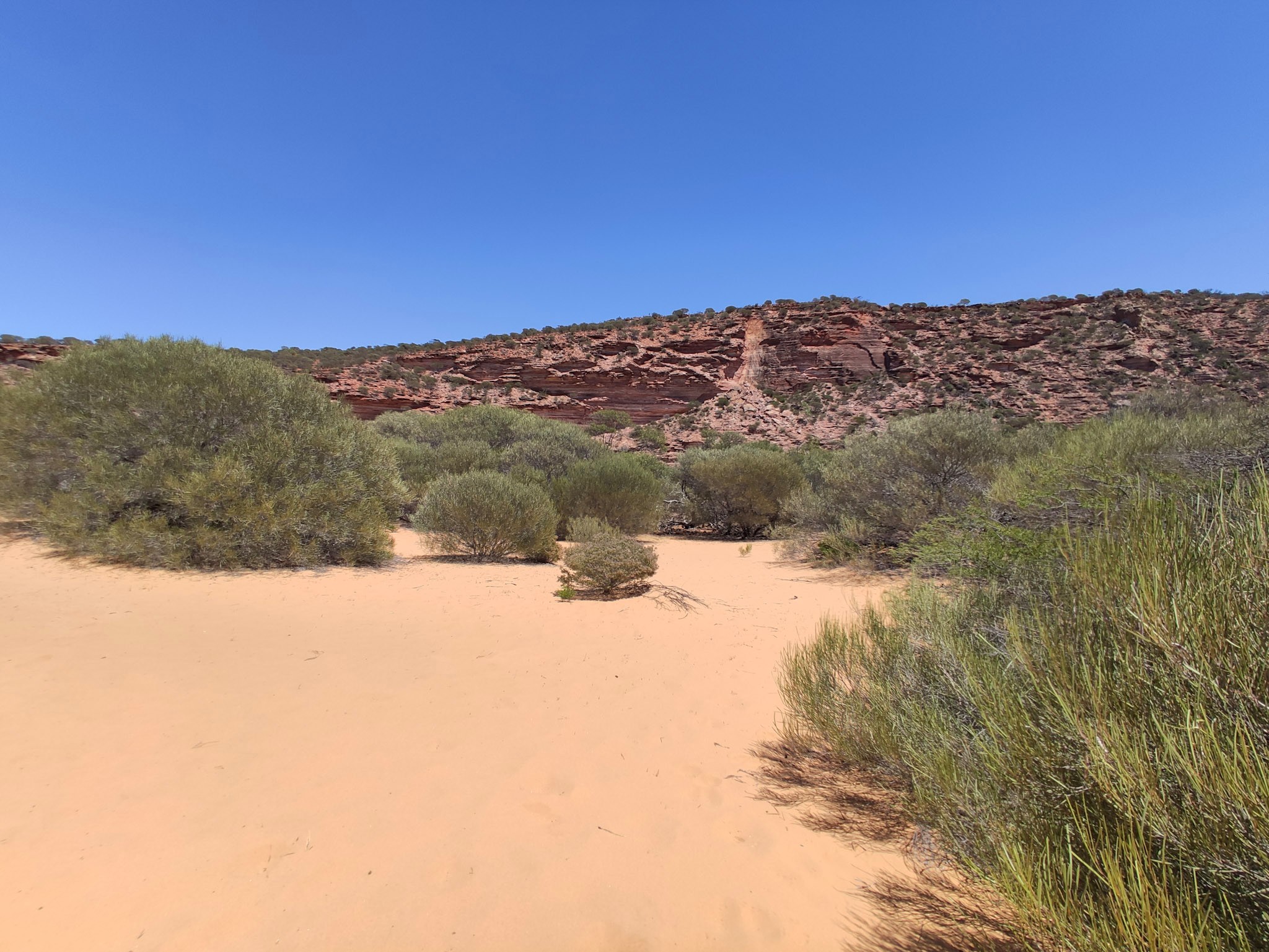 Der Loop ist eine fast ganze 360 Grad Windung des Murchison Rivers. Auf 8km (inklusive Weg zum Natures Window sind es total 9km) kann man dem Loop im Gegenuhrzeigersinn von Natures Window aus folgen und erreicht am Schluss (nach 3-5h), wer hätte das erwartet, wieder Natures Window.