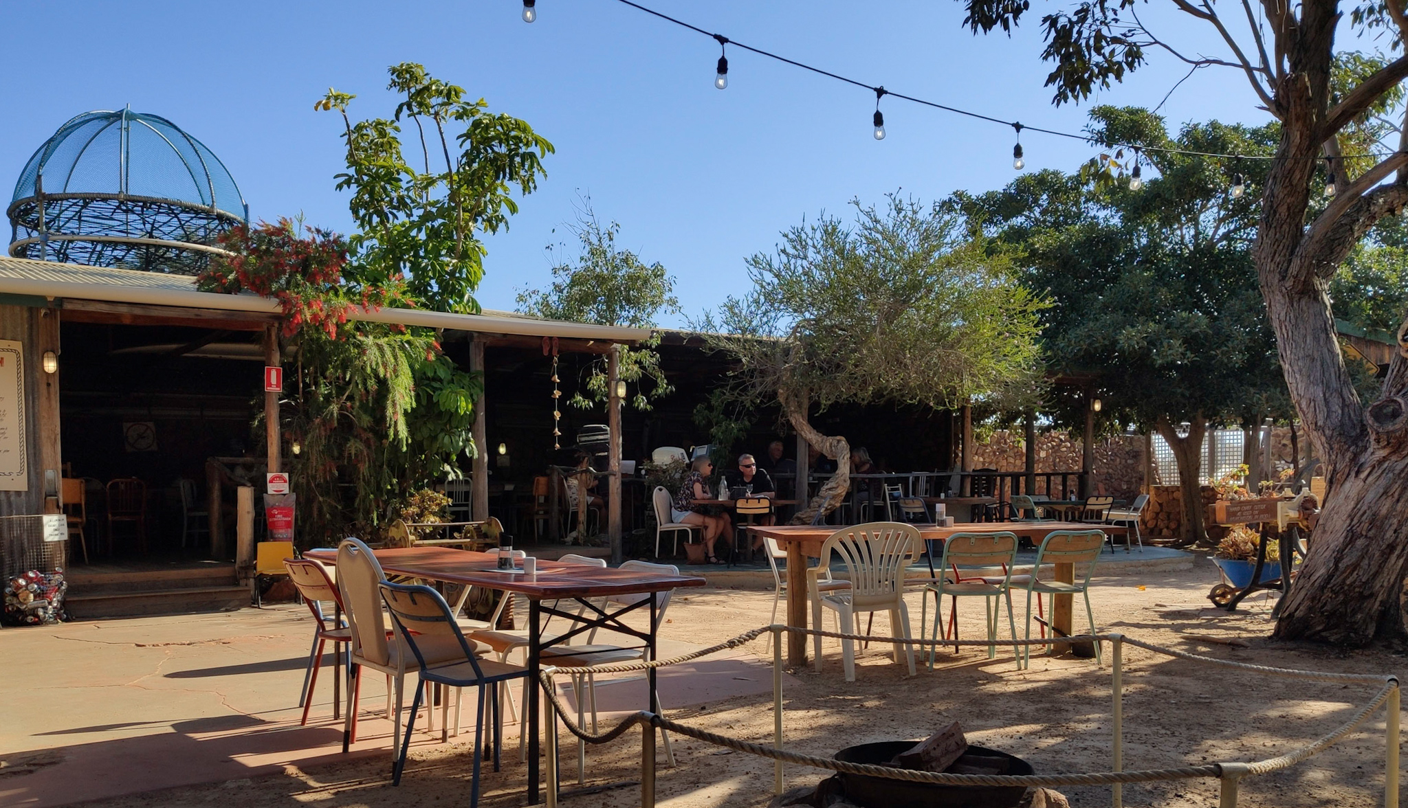 Abends ging ich zu Fuss noch zum Sonntags-Konzert des Fish-BBQ und Microbrewery Finlays, welche vom Murchison CP durch die Büsche und am Sportplatz vorbei gut zu Fuss erreichbar ist. Es spielten zwischen 16 und 19 Uhr Tracey Barnett und Tanya Ransom, zwei Folk-Sängerinnen aus Western Australia (respektive Kimberley). Tracey Barnett fand ich sehr überzeugend: Hört euch doch mal an, was die beiden Farmerstöchter aus ihrem Leben im weiten Westaustralien zu erzählen haben.