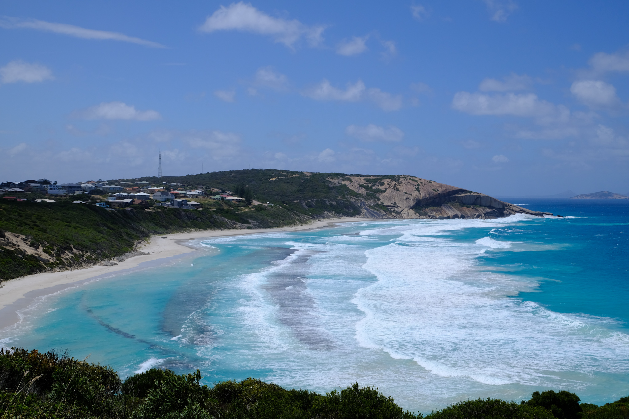 Mir gefällt Esperance sehr gut. Es gibt eine grosse Auswahl von Geschäften, ein kleines Museumsdorf im Zentrum und entlang des Strandes eine einladende Promenade mit unzähligen Spiel- und Picknickmöglichkeiten. Es gibt sogar einen Fahrradweg, welcher bis zum Great Ocean Drive führt. Viele gepflegt aussehende Hotels säumen die Promenade. So ein tolles Städtchen ist selten zu finden. Es lädt als Stützpunkt zu den umliegenden NP und Stränden ein. Mit wärmeren Sommertemperaturen ist es sicher auch ein idealer Badeort. Anfang November ist es eher ein Anziehungspunkt für Angler und durchreisende Touris.