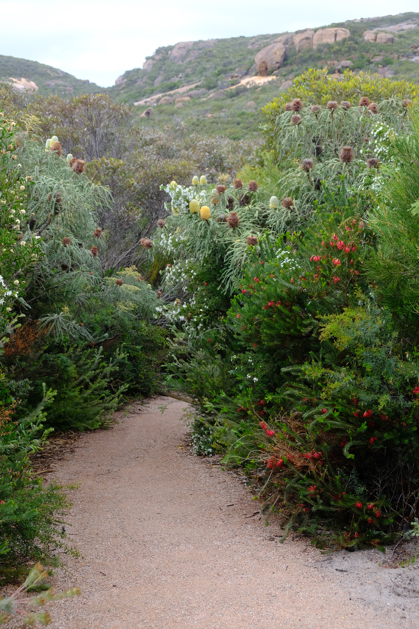 Aber als ich meinen ersten Stopp bei der Hellfire Bay machte, gab es wenig Anzeichen von Paradies. Es zogen schon wieder dunklere Wolken auf und es begann bald zu regnen. Nach dem Regen suchte ich etwas Bewegung auf dem Walk in die nebenan liegende Little Hellfire Bay. Trotz feuchtem Wetter genoss ich die vielen schönen Blüten.