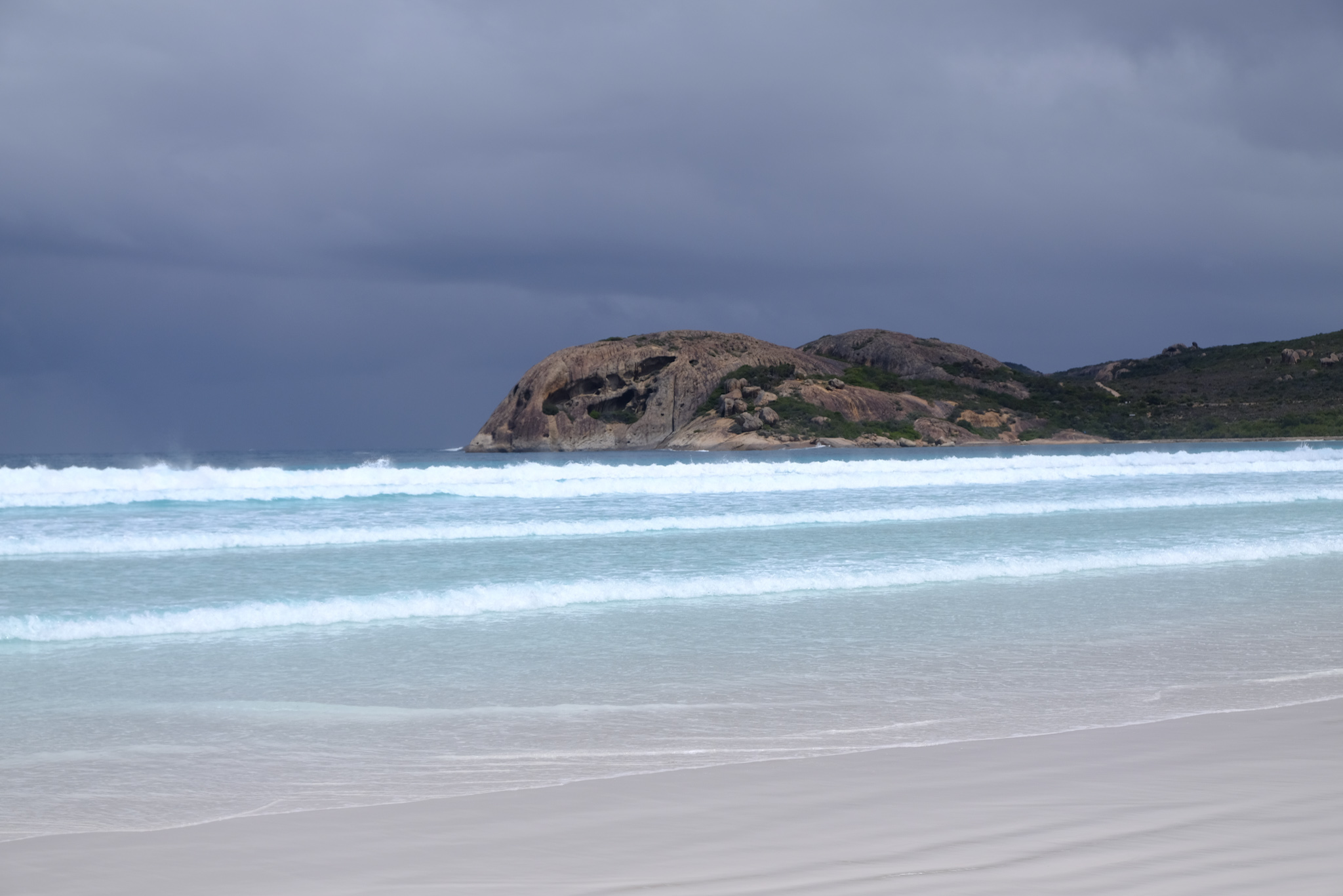 Es war nun knapp trocken und ich machte ein paar Bilder des Strandes mit den bedrohlich grauen Wolken im Hintergrund.