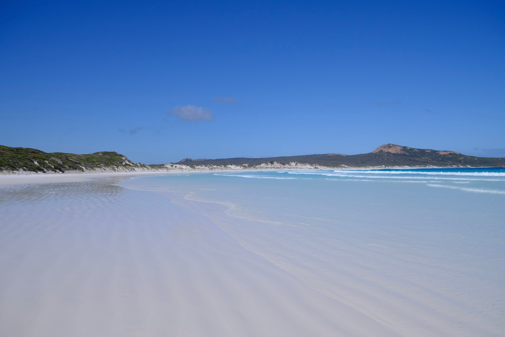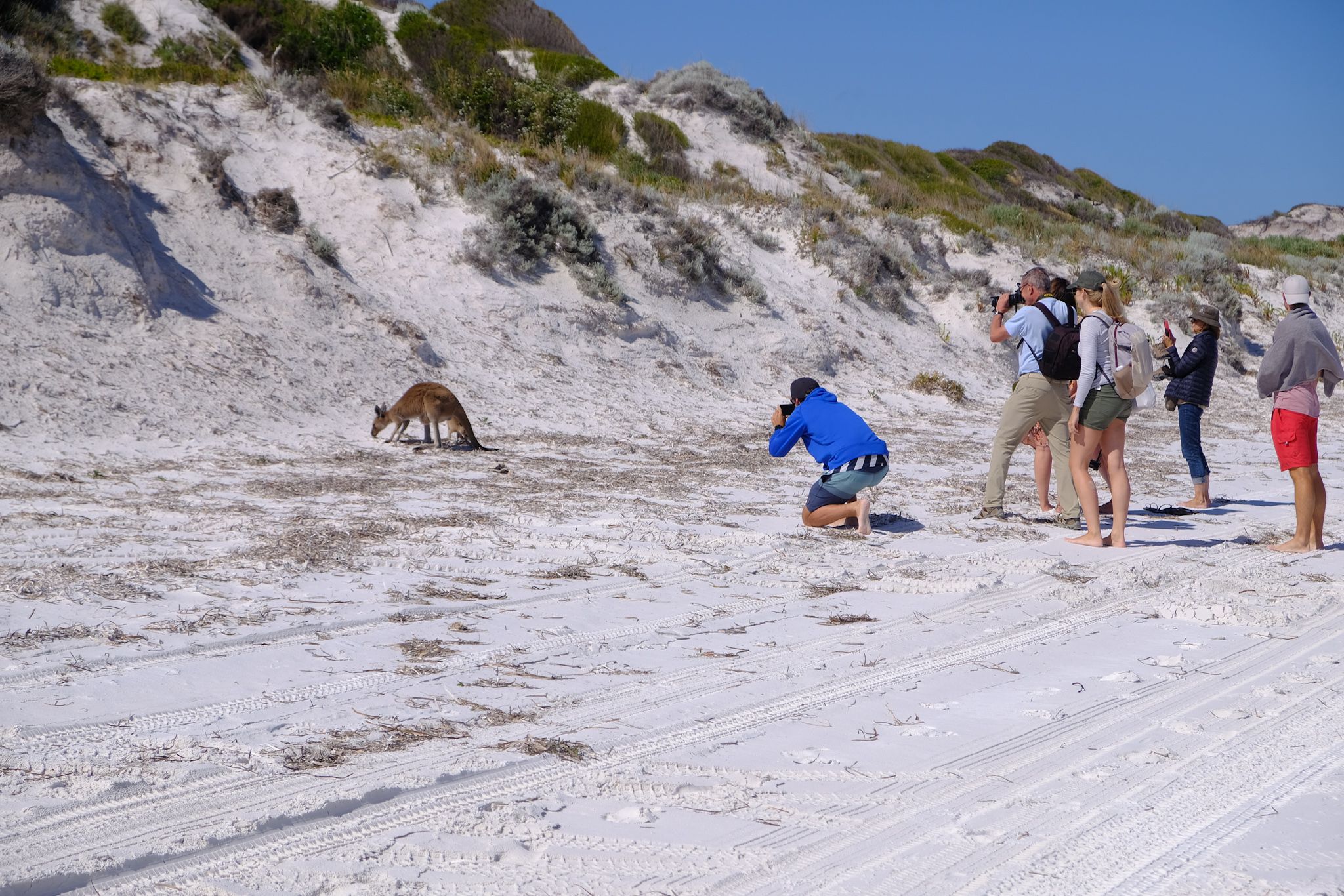 Da es jetzt viel blauen Himmel gab, bin ich zurück zu Lucky Bay und konnte die gewünschten Fotos bei einem langen Strandspaziergang machen.