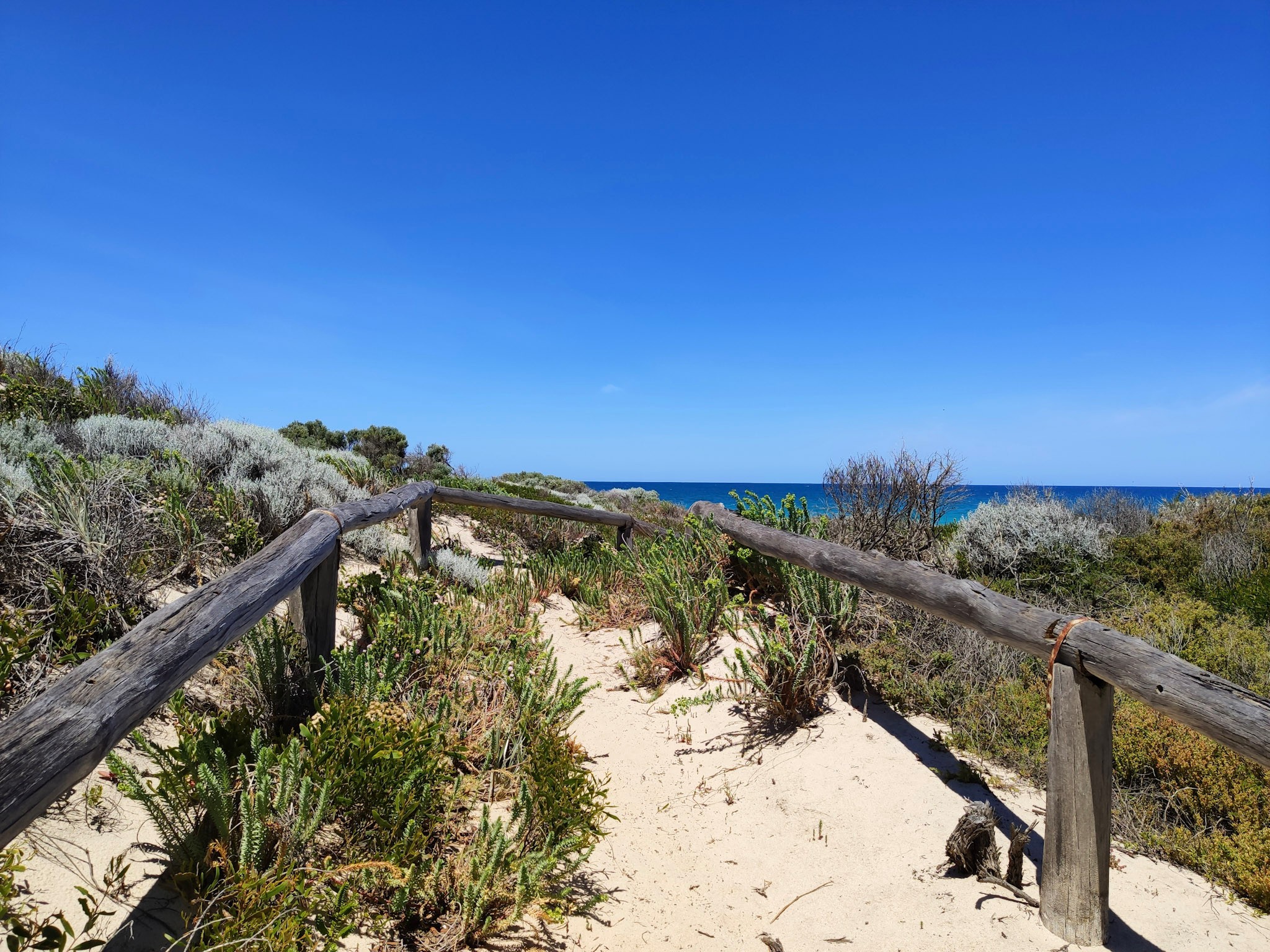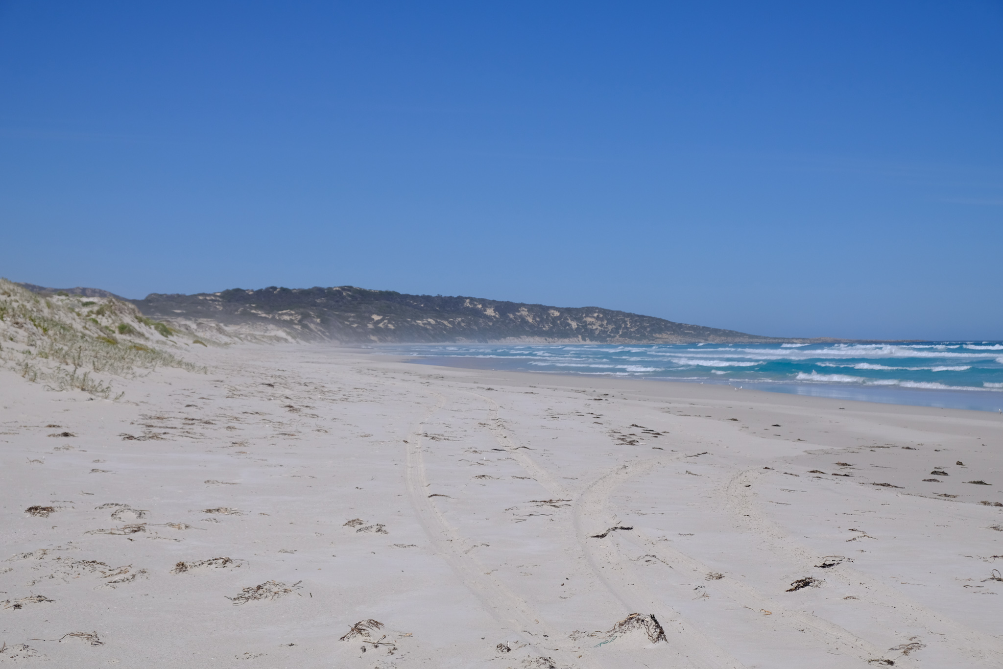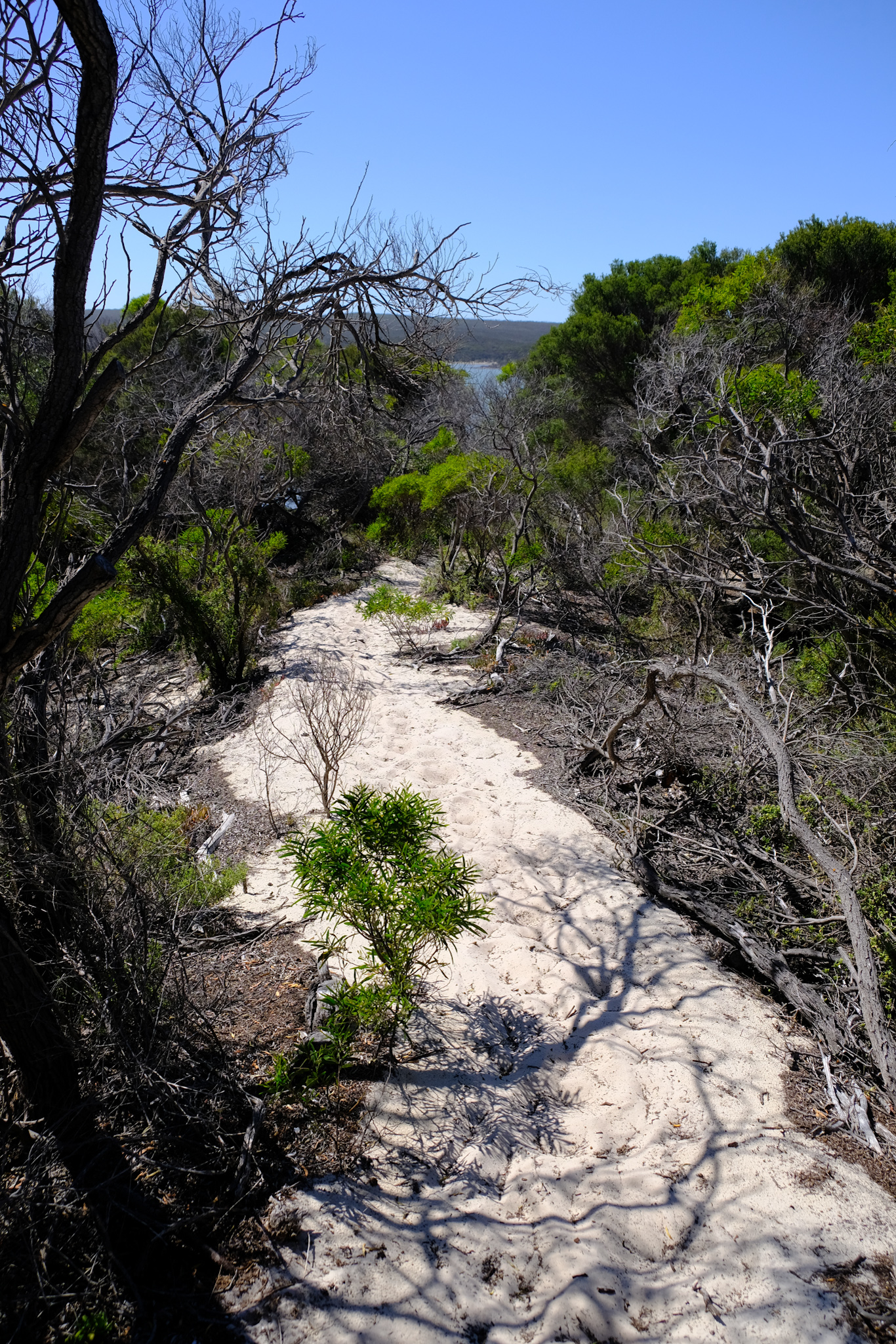 Dieser führt rauf und runter über zahllose bewaldete Dünen zur versandeten Mündung des Hamersley River und zum Strand. Ein toller Weg! Man könnte von hier aus die ganze Küste zurück wandern, der Weg ist gut markiert. Oder weiter in die Wildnis auf dem unmarkierten Weg via Whalebone Creek bis zum Quoin Head gehen. Diese beiden Stationen wären über einen 4WD Track erreichbar.