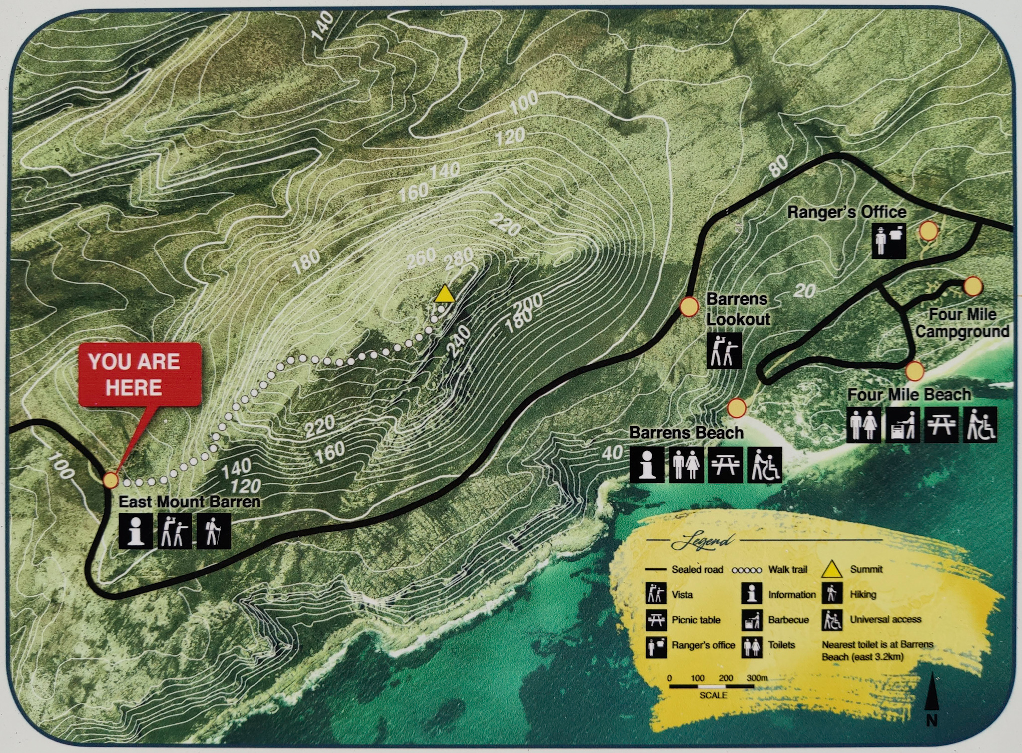 Am nächsten Morgen stand ich dann um 8 Uhr schon auf dem Parkplatz vor dem East Mount Barren. Von hier aus geht ein (hin und zurück) 2.6km langer Weg auf die Spitze des Berges.