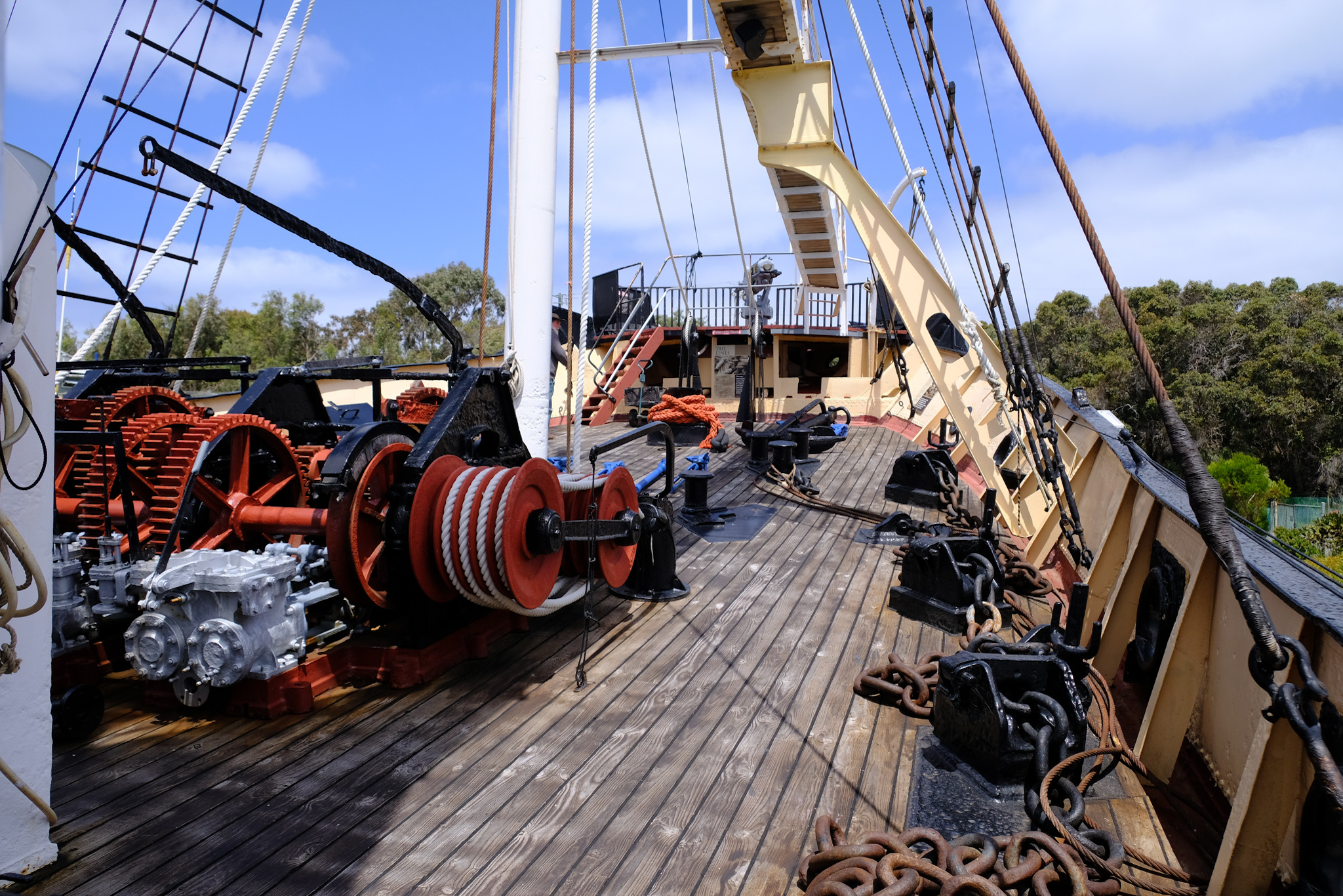 Das Verfolgerschiff Cheynes IV wurde in einer aufwändigen Aktion in das Museum integriert. Man baute einen grossen Wall um das Schiff, füllte diesen Pool mit Wasser, damit das Schiff höher lag und fixierte das Schiff. Danach liess man das Wasser ab und entfernte den Wall. Erst später merkte man, dass das Schiff mit einem 45°-Winkel zum natürlichen Ufer des Museums etwas unglücklich lag. Mit Hilfe von Holzplanken und Baggern dreht man es in die aktuelle Lage, sodass man einfacher über einen kurzen Steg in und auf das Schiff gelangen konnte. Das Dampfschiff ist in einem kompletten und sehr schönen Zustand. Wenn man es besichtigt, könnte man meinen, die Besatzung hätte es gerade eben verlassen.