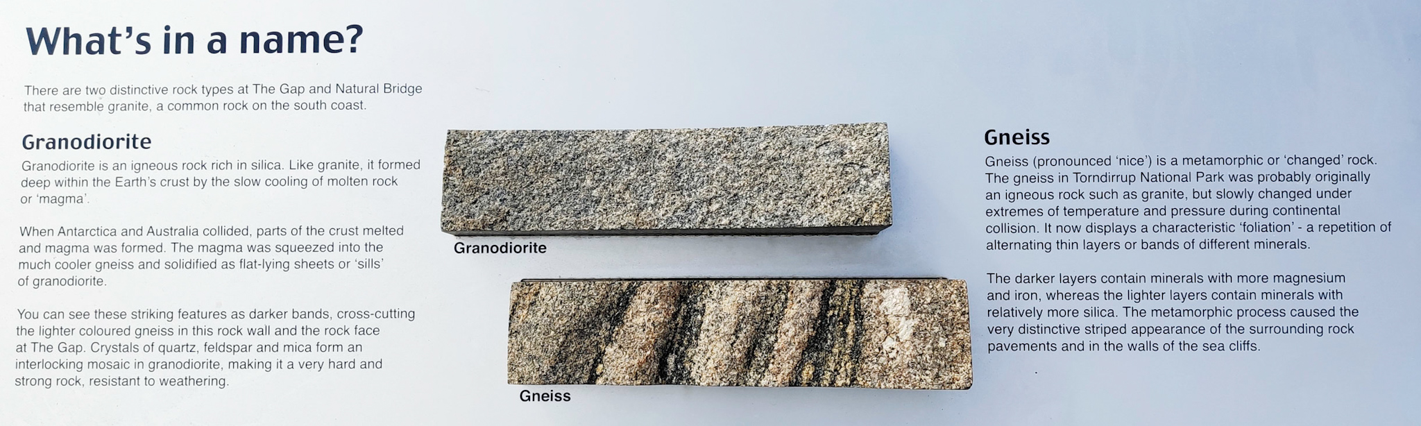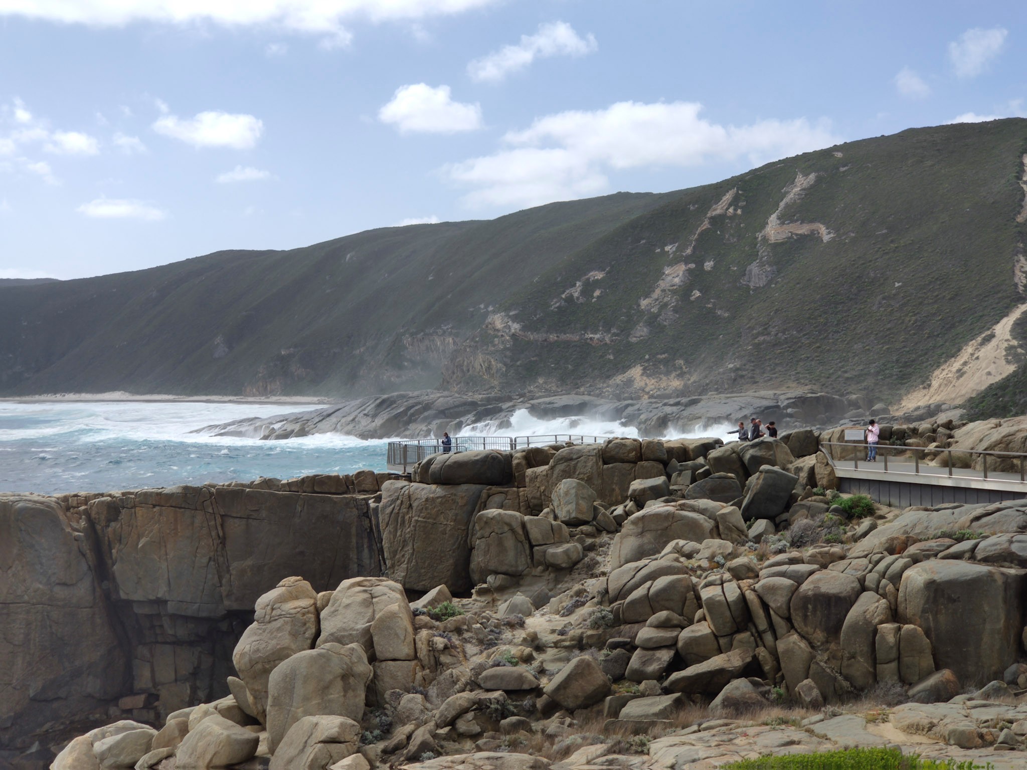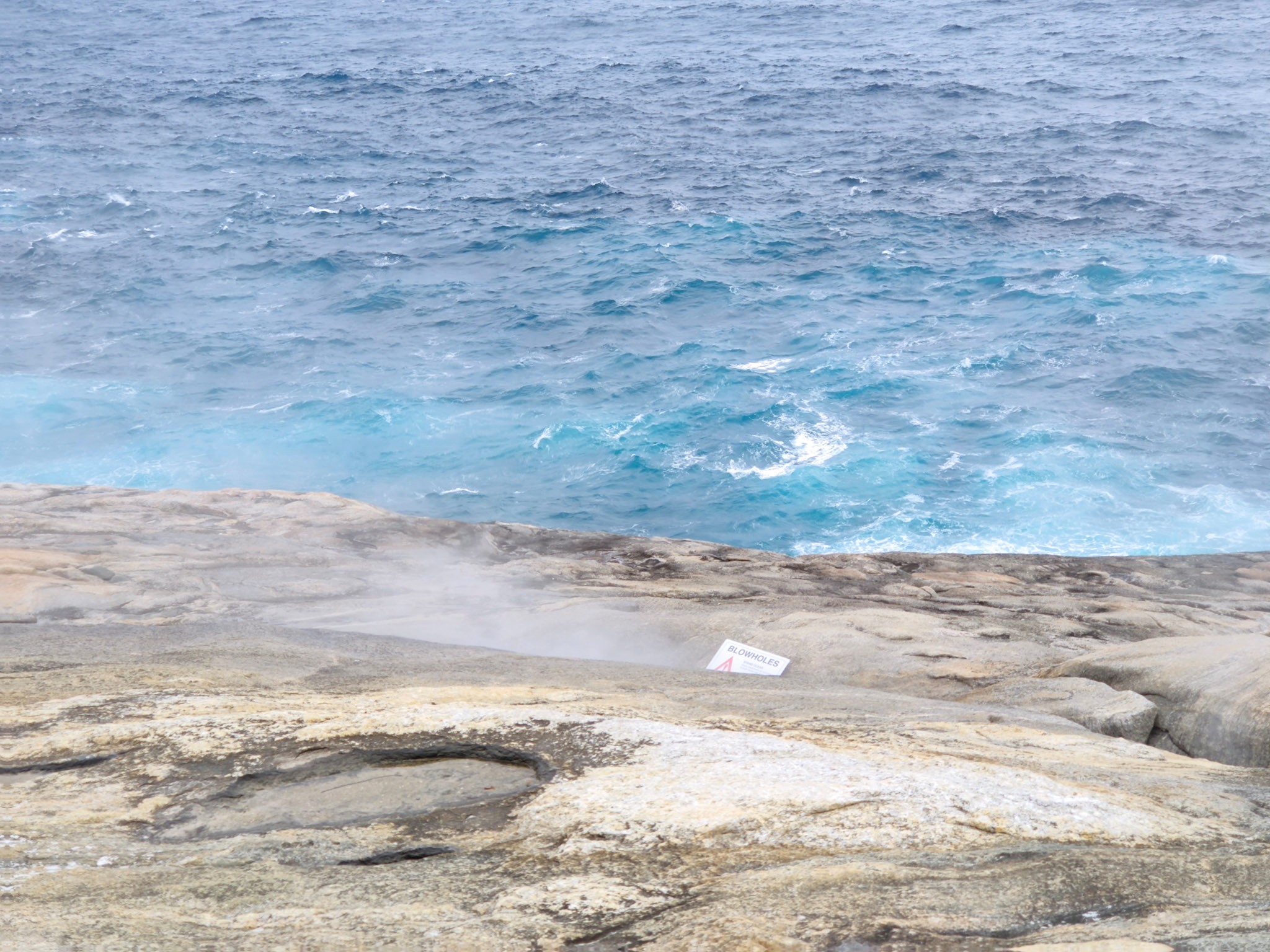 An dieser Küste sterben auch heutzutage jedes Jahr Menschen. Sie scheint Lebensmüde wie magisch anzuziehen. An der Strasse durch den Nationalpark und auch in Albany stehen viele Schilder von Organisationen, welche Hilfe bei Problemen anbieten. Aber auch ohne solche Gedanken sind die Felsen gefährlich: Es können Überlagerungen von Wellen entstehen, sogenannte Freak Waves, welche einem ganz schnell über die steilen Felsen in die tödliche Brandung waschen. Von einer glücklichen Rettung durch die Mannschaft der Cheynes IV (siehe Blogpost über Albany’s Whaling Station) berichtet ein Schild bei The Gap.