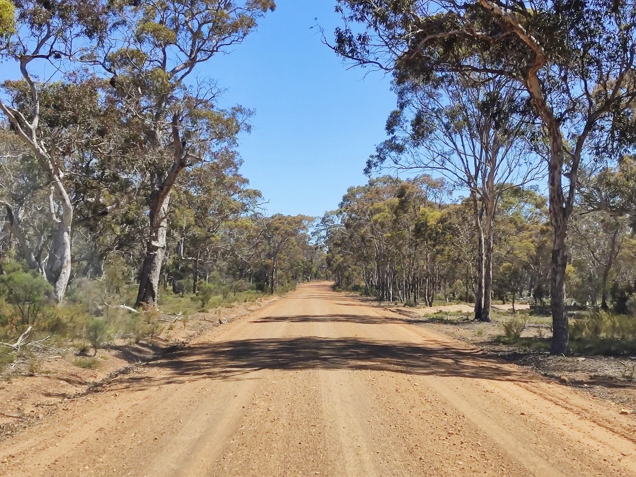 Heute Morgen herrschte in Albany immer noch eine dicke Wolkendecke, aber die Prognose sagte schöneres Wetter voraus. Und morgen soll es sogar deutlich wärmer werden. Ich hatte mir vorgenommen, den Porungurup NP zu besuchen. Kaum ein paar Kilometer landeinwärts klarte sich das Wetter rasch auf. Beim Abzweiger zum Porungurup NP herrschte ein komplett blauer Himmel vor, sodass ich mich umentschied, den Abzweiger nicht nahm und die Strasse weiter in den etwas weiter entfernten Stirling Range NP fuhr. Denn morgen bei wärmeren Wetter würde ich wohl eher den näheren Porungurup NP besuchen und dann nachmittags vielleicht noch Zeit für einen Strandbesuch haben.