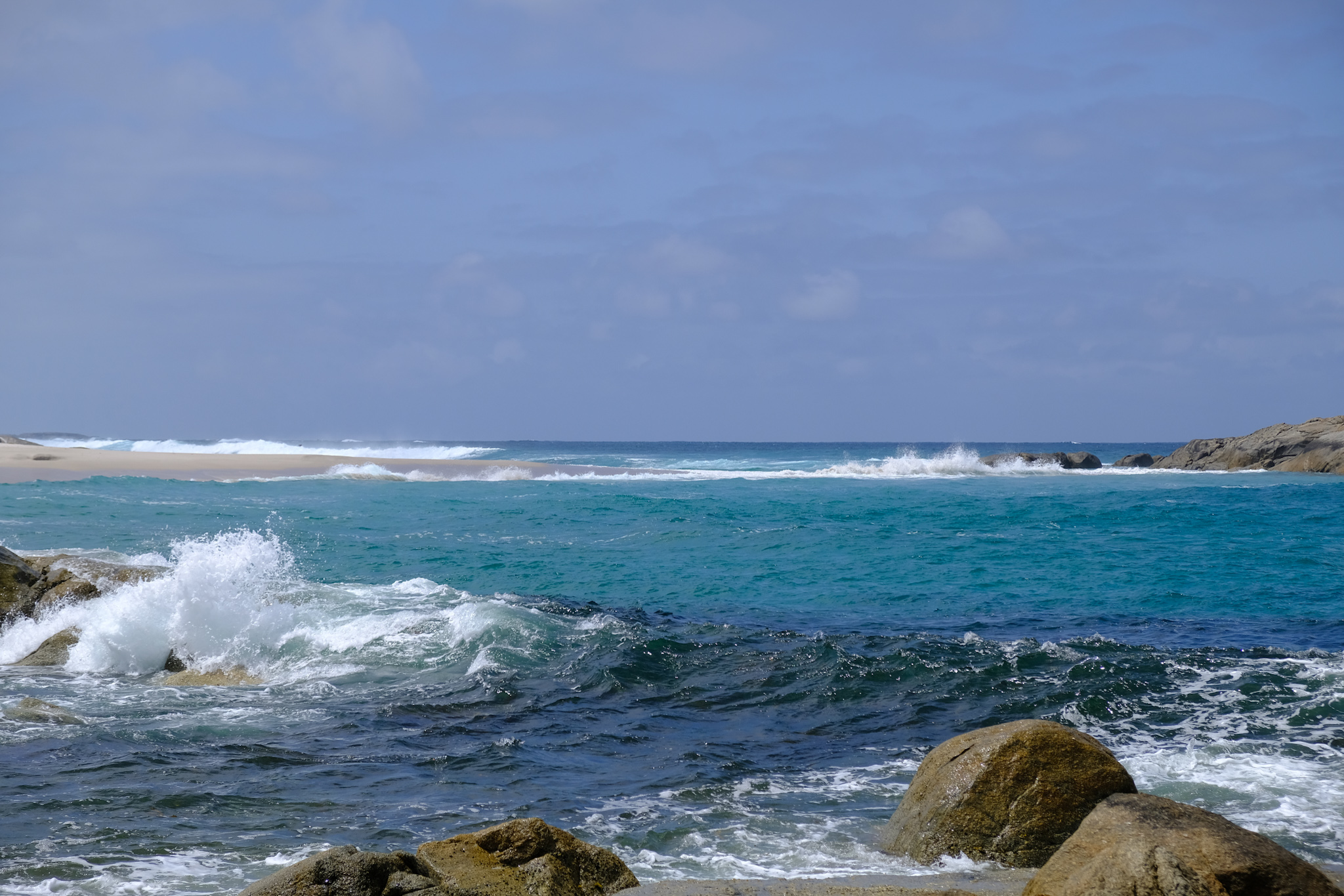 Danach stand natürlich der vielgepriesene Greens Pool auf dem Plan. Da ich Greens Pool sowie die daneben liegenden Elephant Rocks schon vor 6 Jahren besucht hatte, verweise ich gerne auf diese Blogbeiträge. Ich habe dieses Mal auf den Besuch der Elephant Rocks verzichtet und genoss im Windschatten und bei Sonnenschein den Strand von Greens Pool im Beach Chair. Wiederum verwunderte mich, dass einige Leute (in Badesachen!) im eisigen Wasser und sehr kühlem Wind ausgiebig baden gingen. Die Idyllische Atmosphäre und das ruhige Wasser lassen auf den Bildern andere Temperaturen vermuten… Während ich in Badehose die Sonne genoss, hatten die Besucher ohne Windschatten alle ihre Jacken an.
