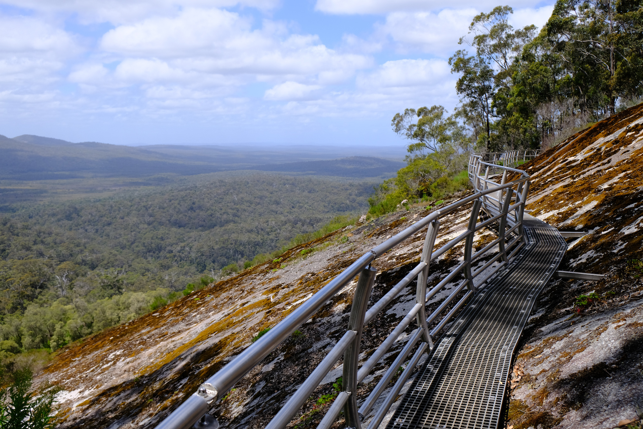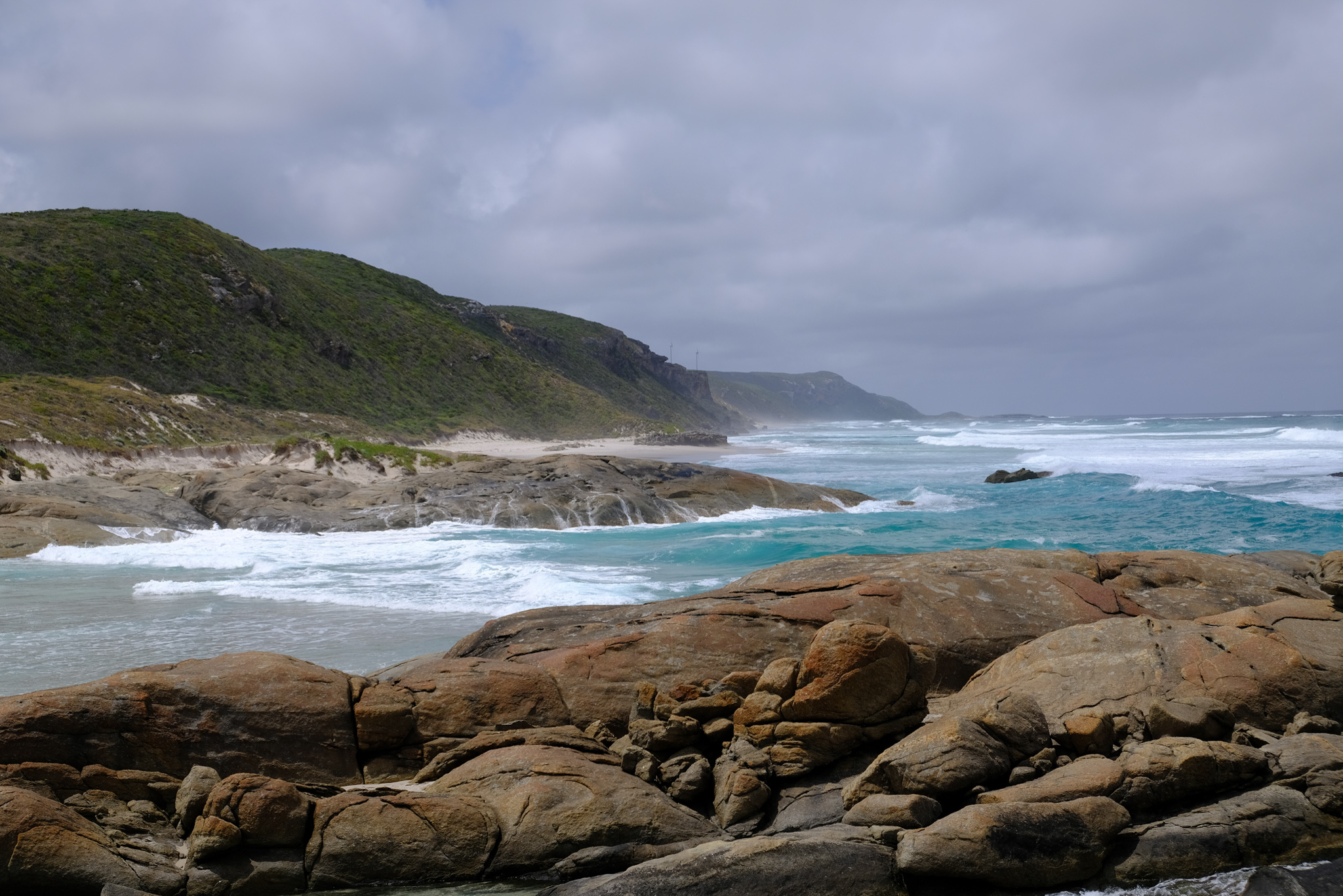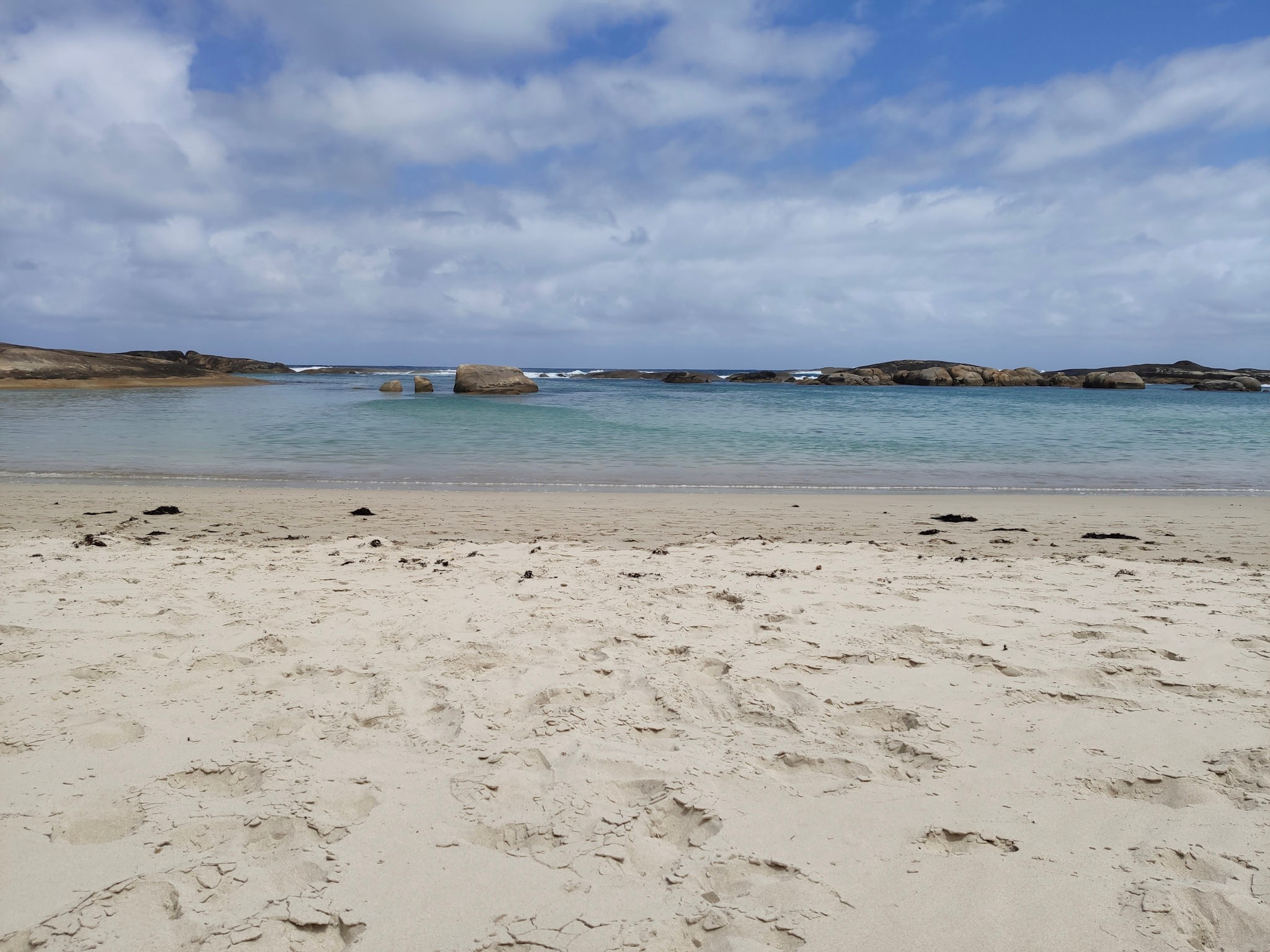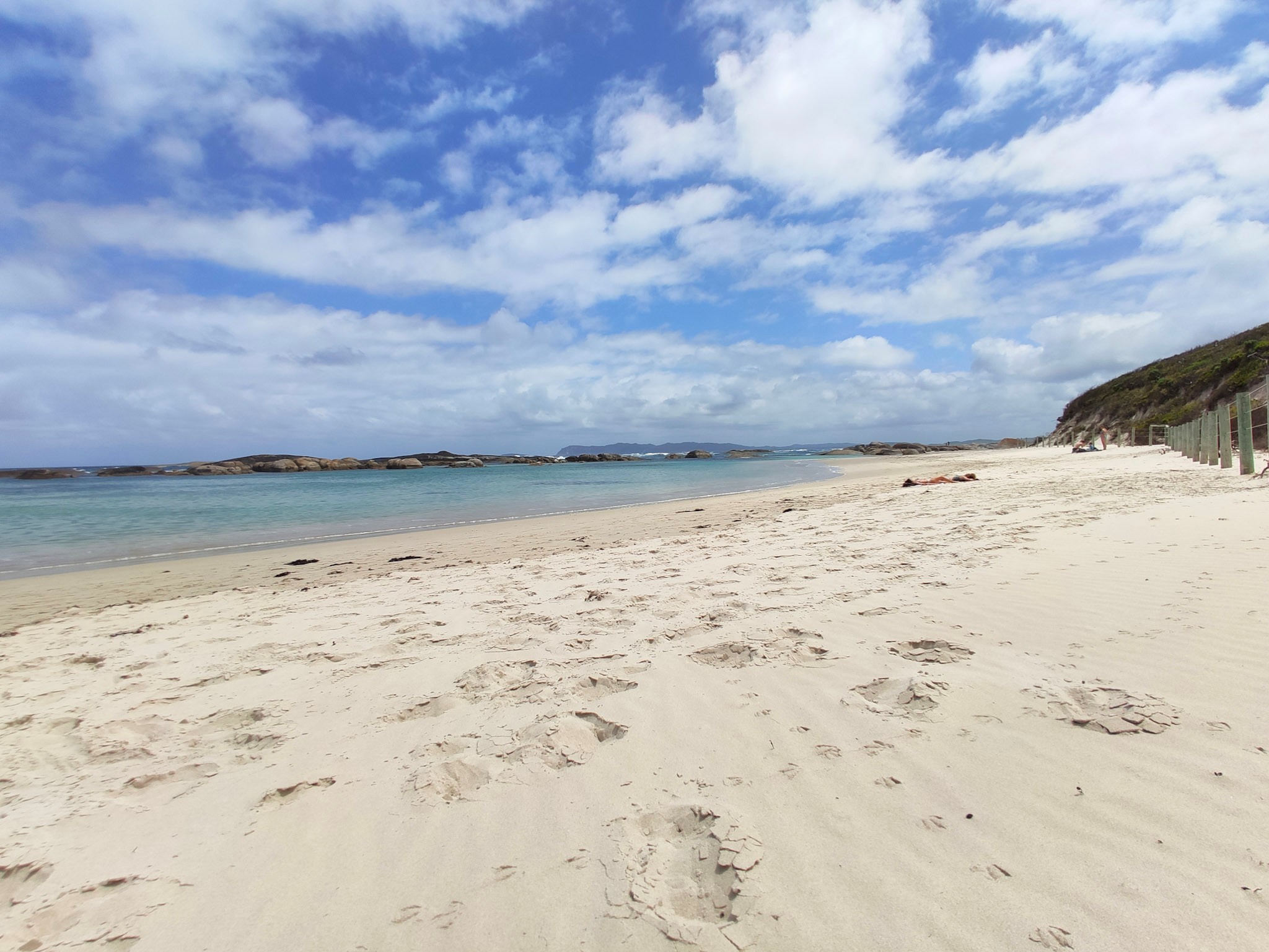 Danach bin ich noch die Klippen und die Aussicht bei Conspicuous Cliff anschauen gegangen. Oben beim Ausguck habe ich eine Wandererin des Teils des Bibbulmun Tracks (1’003 Kilometer langer Fernwanderweg) aus Deutschland getroffen. Sie ist seit 11 Monaten in der Welt unterwegs. Sie hat mir bestätigt, dass sie mindestens ein Mal pro Tag eine Schlange auf dem Weg antrifft…