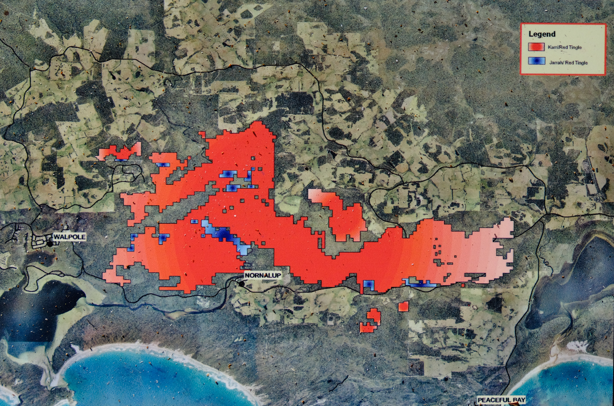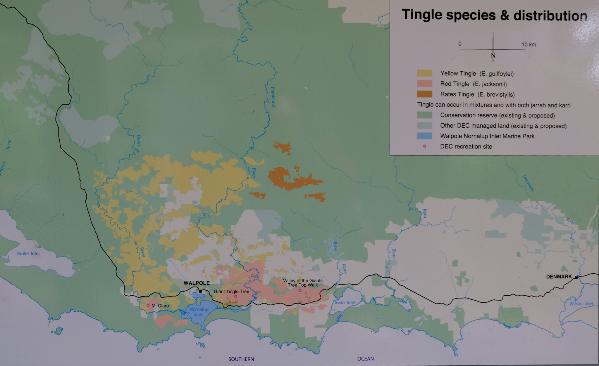 Die Bäume waren auf Gondwana sehr weit verbreitet. Versteinerte Tingle wurden unter anderem im heutigen Indien gefunden. Doch überlebt haben die Bäume nur im Gebiet rund um Walpole. Hier regnete es während vieler tausend Jahre wohl immer mehr als 1000mm pro Jahr, und der Boden (dünne Erdschicht über Granit) entspricht ihren Bedürfnissen. Aktuell sind es etwa 1’200mm Regenmenge pro Jahr.