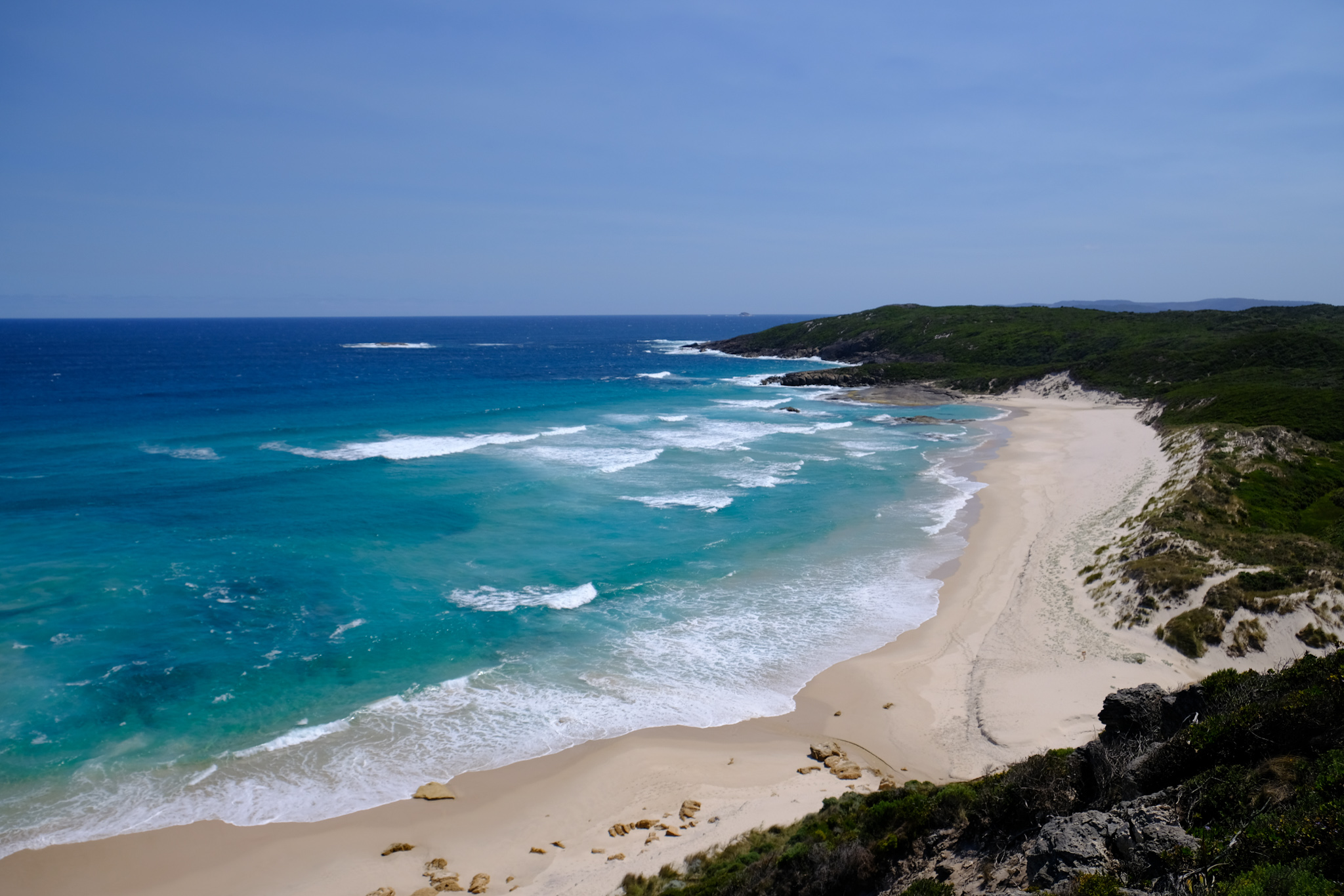 Zum Abschluss bin ich dann noch die Seeseite der Walpole Wilderness abgefahren und habe zuerst Peaceful Bay für einen Lunch angefahren. Das ist ein sehr verschlafene Nest mit einem weiteren schönen und geschützten Strand. Es hat grosse Parkplätze, da wird wohl im Sommer mehr los sein.
