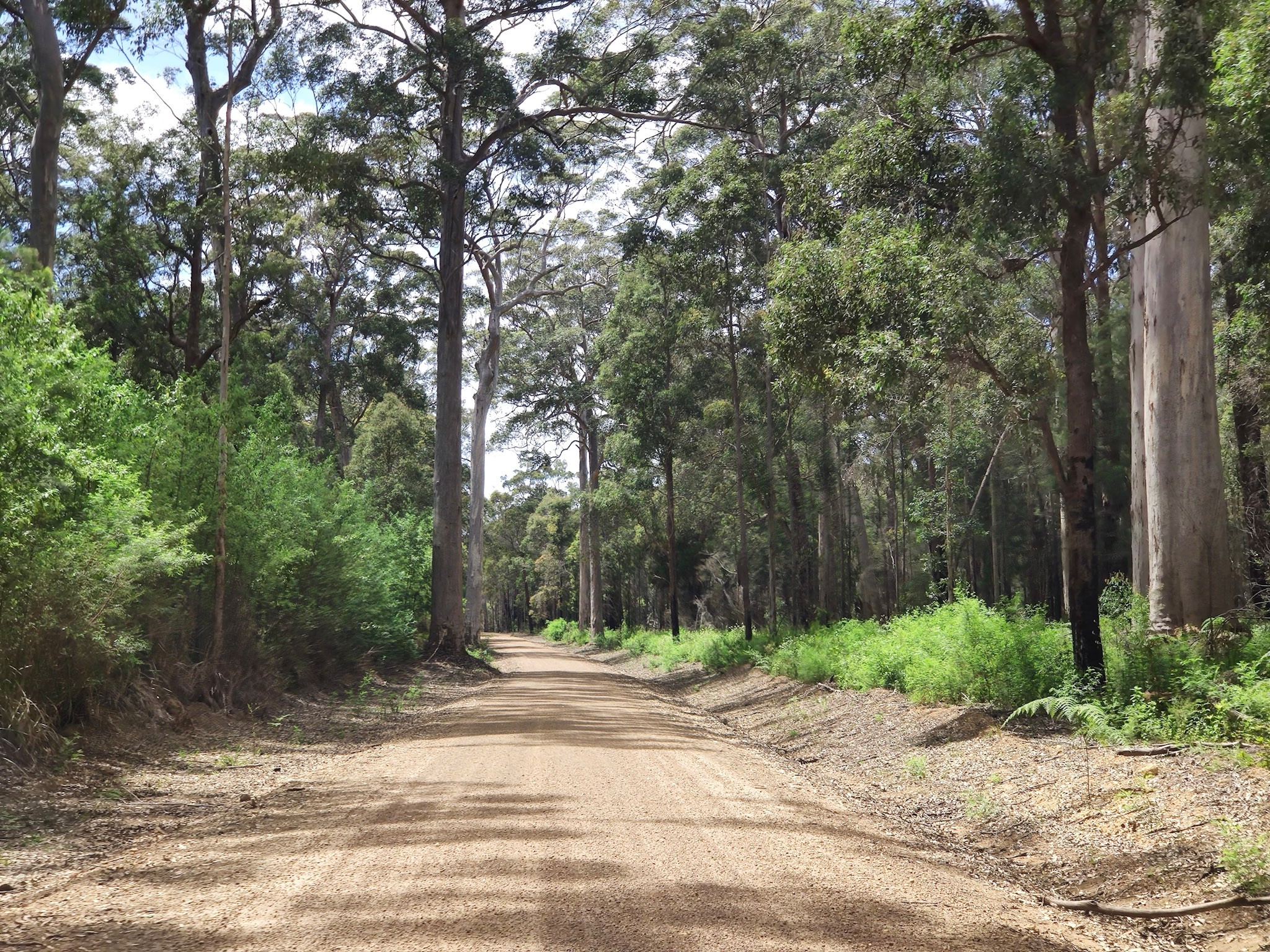 Die hohen Karri Bäume sind übrigens die dritthöchsten Bäume der Welt (nach den Redwoods in Nordkalifornien und einer weiteren Baumart in Tasmanien).