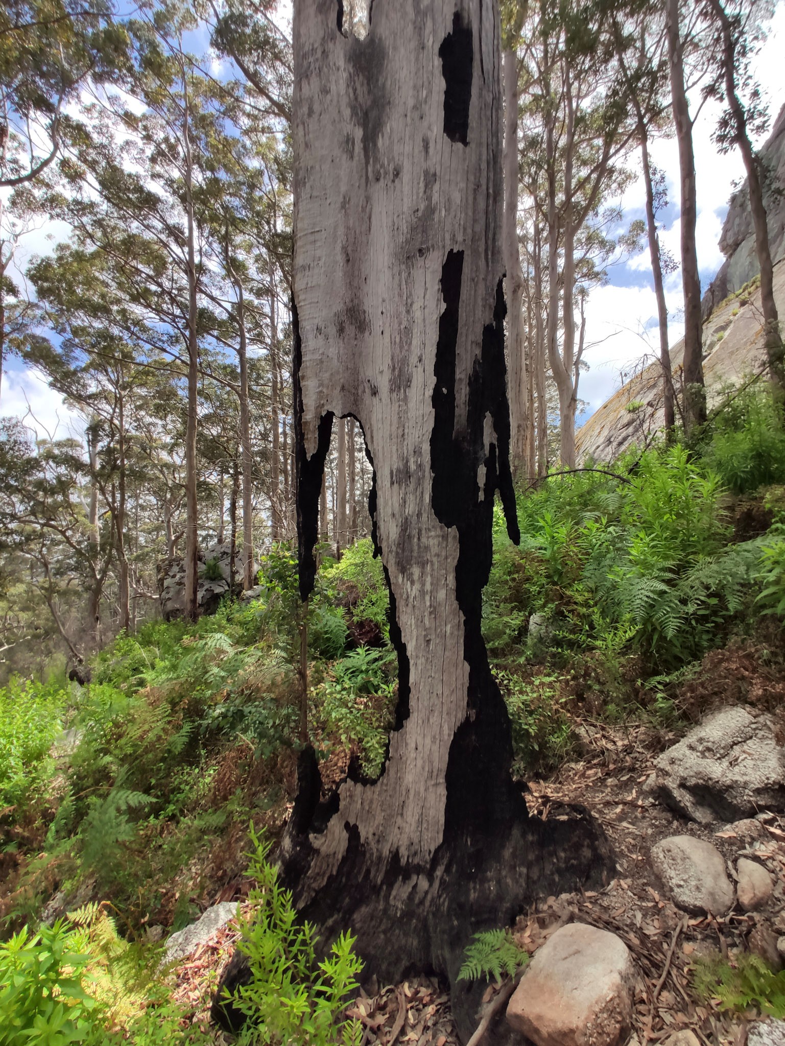 Die Bäume entlang des Weges sind einfach fantastisch. Was die Buschfeuer hinterlassen haben, ist auch sehr beeindruckend.