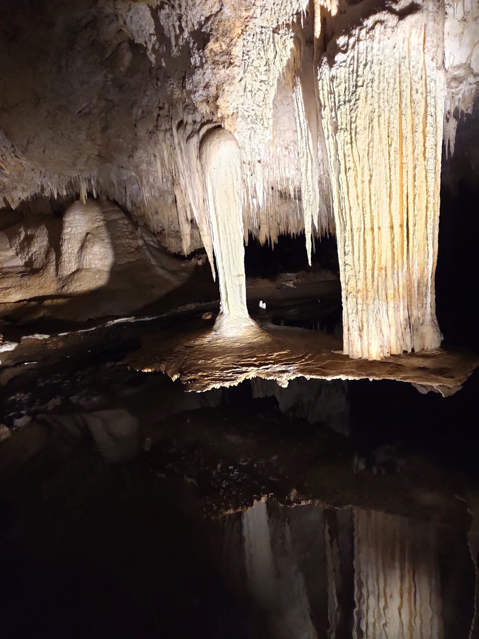 Im Laufe der Zeit senkte sich das Wasser des Lake Cave ab und heute spiegelt sich dieses aussergewöhnliche Tropfstein-Phänomen mystisch im See. Man kann darin die unter dem Tisch wachsenden Formationen betrachten.