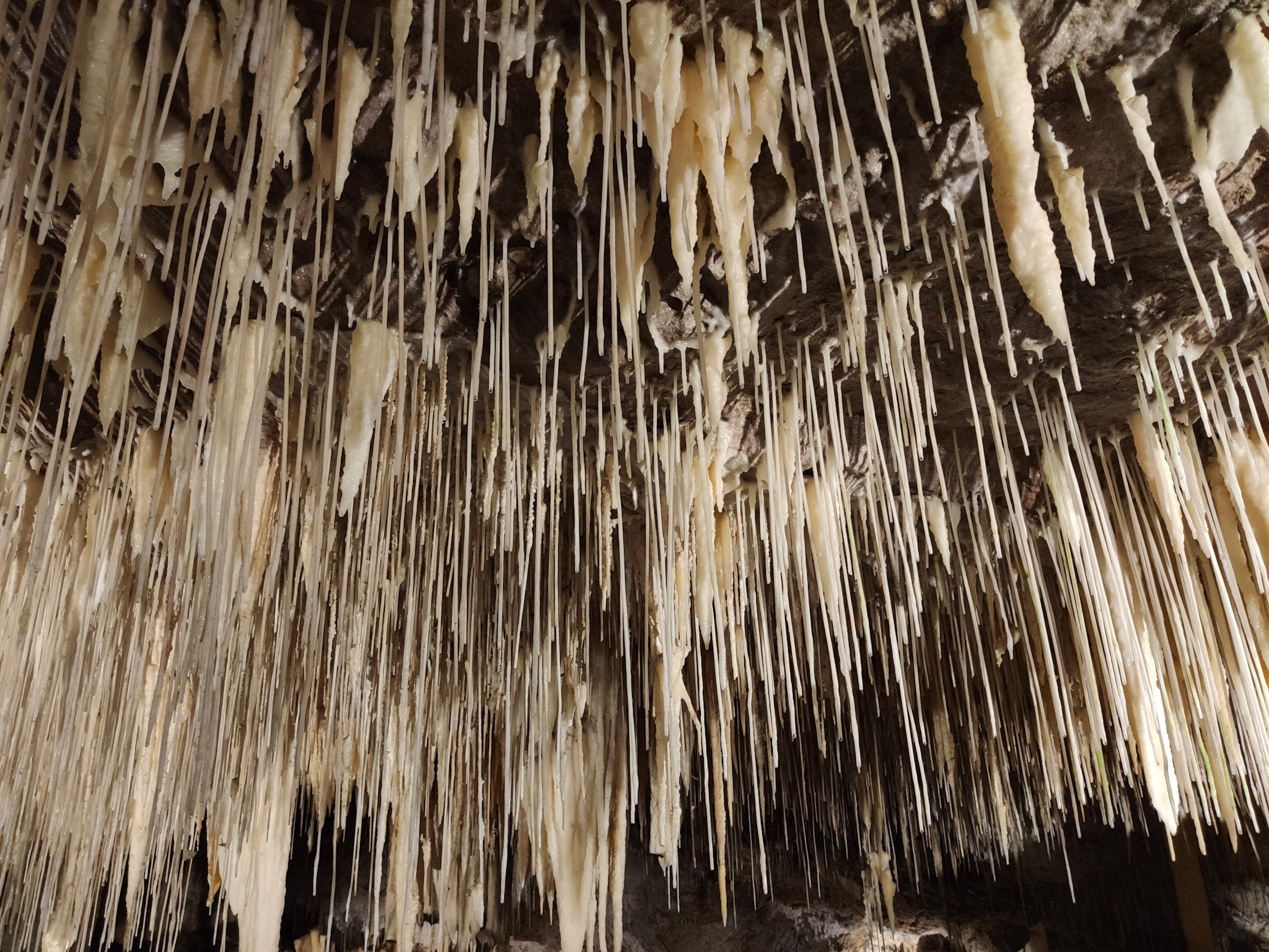 Auf dem Tour bekommen wir all die verschiedenen Tropfstein-Formationen erklärt. Typisch für die sehr aktive Lake Cave sind die Sinterröhrchen oder auch Makkaroni genannt. Diese dünnen Halme (Straws) sind die ursprüngliche Stalaktiten-Struktur. Werden die Röhrchen irgendwann mal verstopft, bilden sich daraus Stalaktiten.