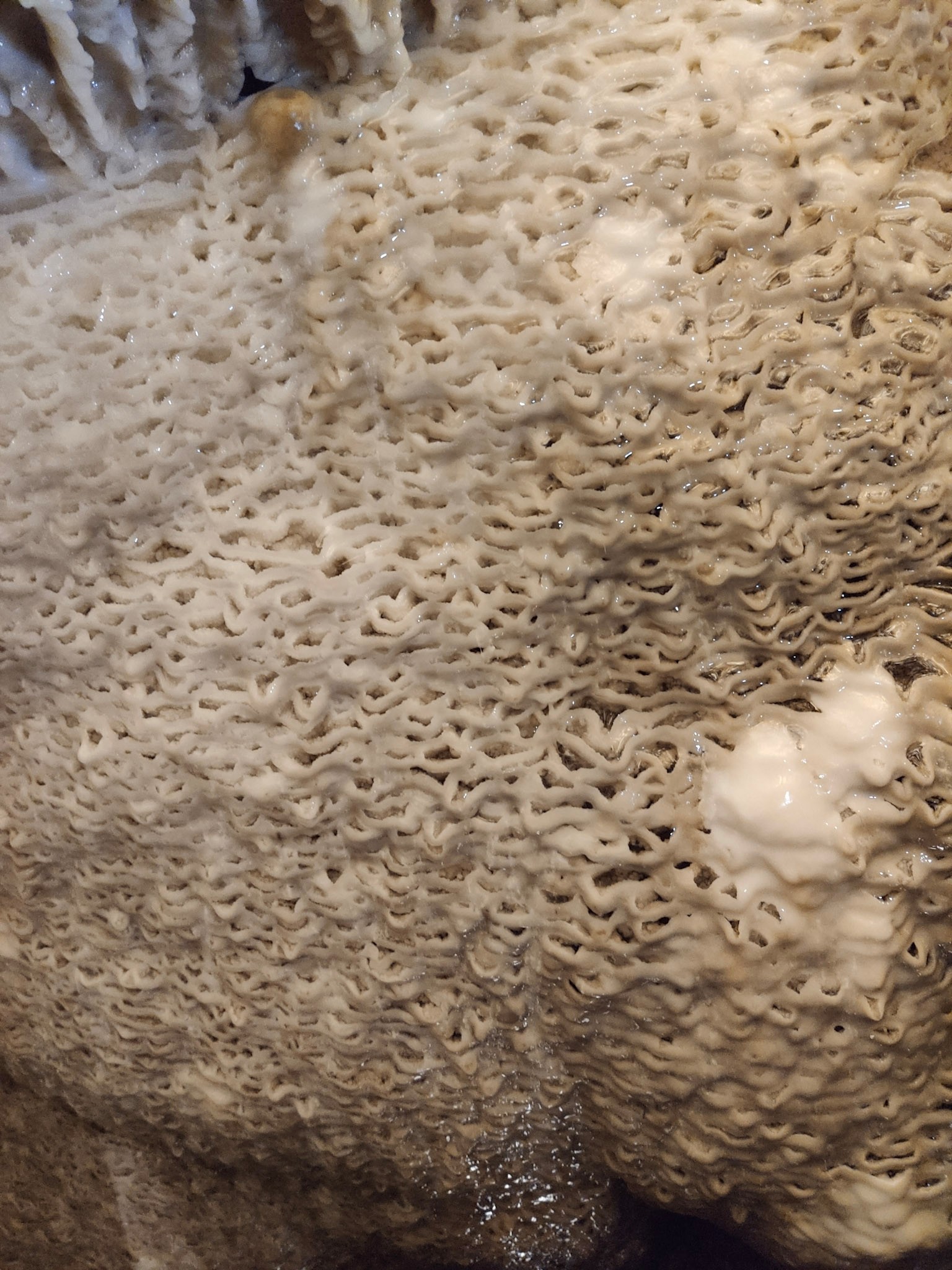 Ein paar dieser Halme wachsen auch kreuz und quer, wie wirres Heu. Das widerspricht eigentlich der Logik von Schwerkraft. Es gibt keine schlüssige Erklärung. Vielleicht doch die Höhlengeister?
