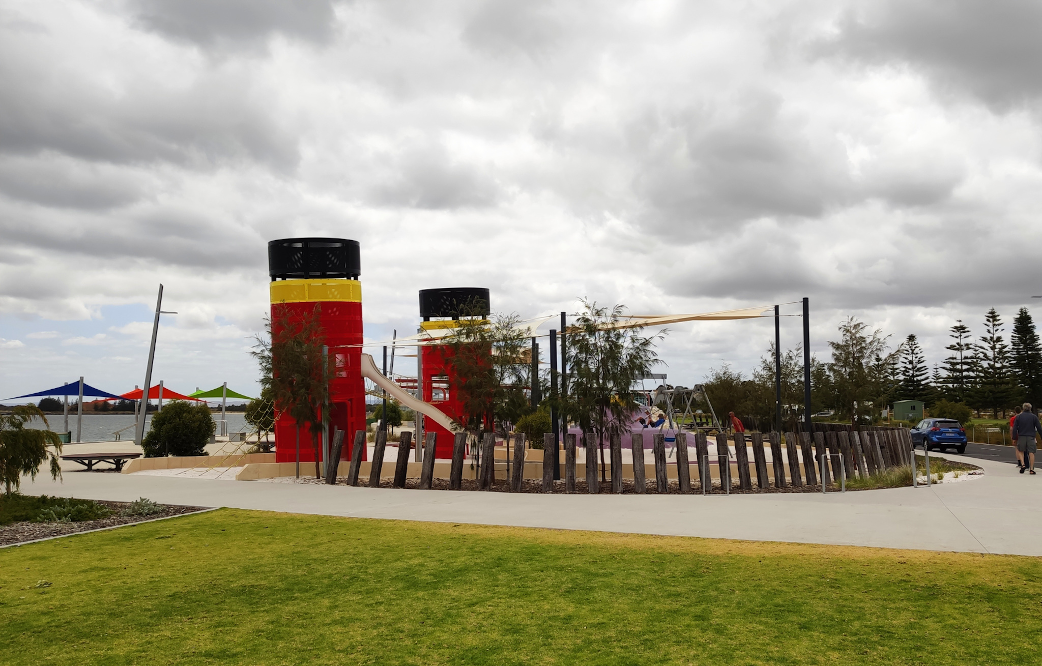 Wieder getrocknet bin ich dann dem Strand entlang gegangen und habe die moderne Kunst und den tollen Spielplatz bestaunt. Da konnte sich ein(e) Architekt(in) oder Gestalter(in) aber richtig verwirklichen.