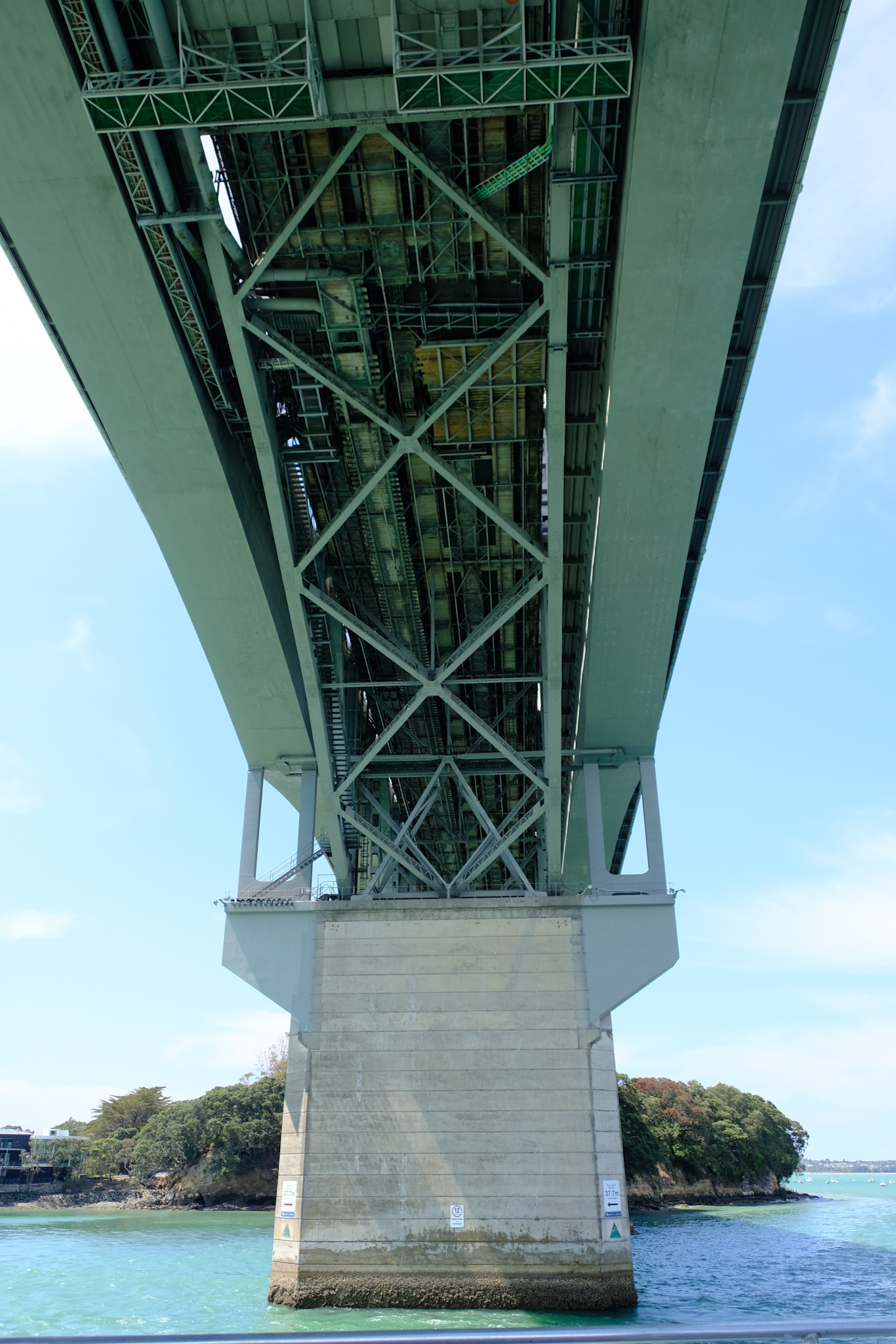 Als letzte Station fuhren wir noch unter der Hafenbrücke durch. Sie wurde nach fast vier Jahren Bauzeit 1959 eröffnet. Ursprünglich waren nur vier Fahrspuren vorhanden, aber die Frequenz an Fahrzeugen stieg so stark an, dass später auf jeder Seite zwei weitere Fahrspuren hinzugefügt wurden. Es gibt aber weder einen Fahrrad noch einen Fussweg über die Brücke. Man auf der Brücke mit der Firma AJ Hackett aber Bungee Springen oder Brückenklettern.