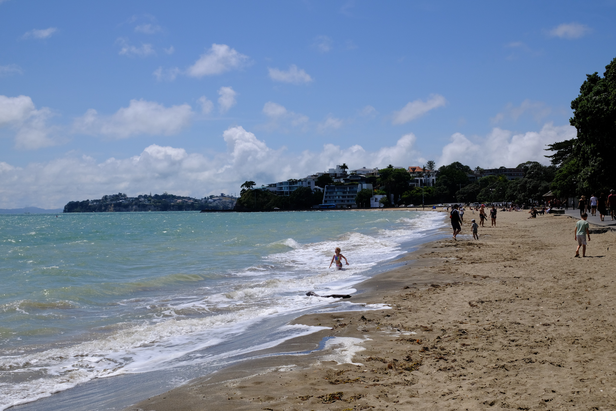 An der dritten Haltestelle, Bastion Point, bin ich dann das erste Mal ausgestiegen. Dieses historische Reservat bietet einen herrlichen Blick über Waitemata Habour, Rangitoto und die Skyline von Auckland. Bastion Point ist ein historisch wichtiger Ort in der neuseeländischen Geschichte als Teil der Maori-Proteste der 1970er Jahre gegen die erzwungene Enteignung durch Nicht-Maori-Neuseeländer. Ich habe den Halt genutzt, um das 10 Minuten entfernte Mission Bay zu erkunden.